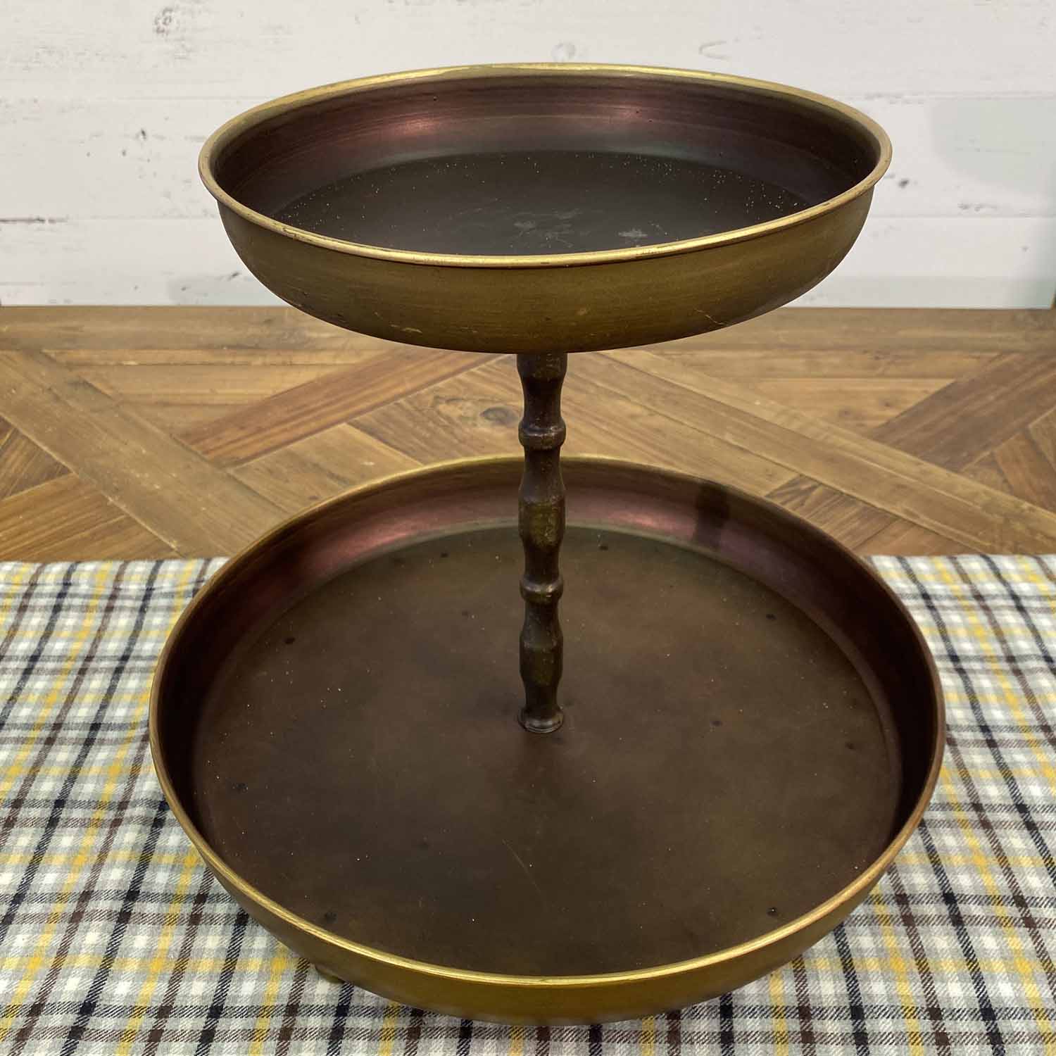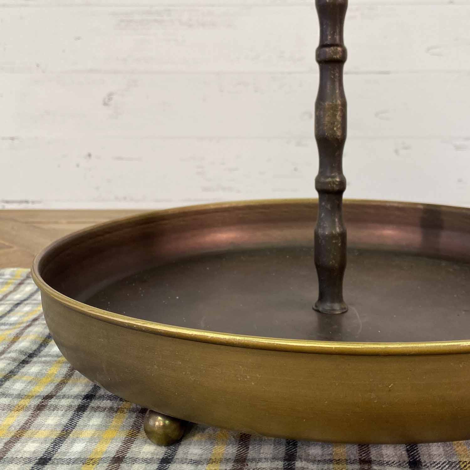 You’ll find countless ways to dress up your home with the cozy, warm tones of the Trina Two Tier Antique Brass Tray this season. Think burnished, weathered brilliance rather than a reflective, shiny finish and you’ll understand why we fell in love with this unique riser. The two trays are each outfitted with a substantial edge to keep display items contained, offering the decorator of the house a perfect platform for creating visual vignettes of original style! Some simple assembly required.