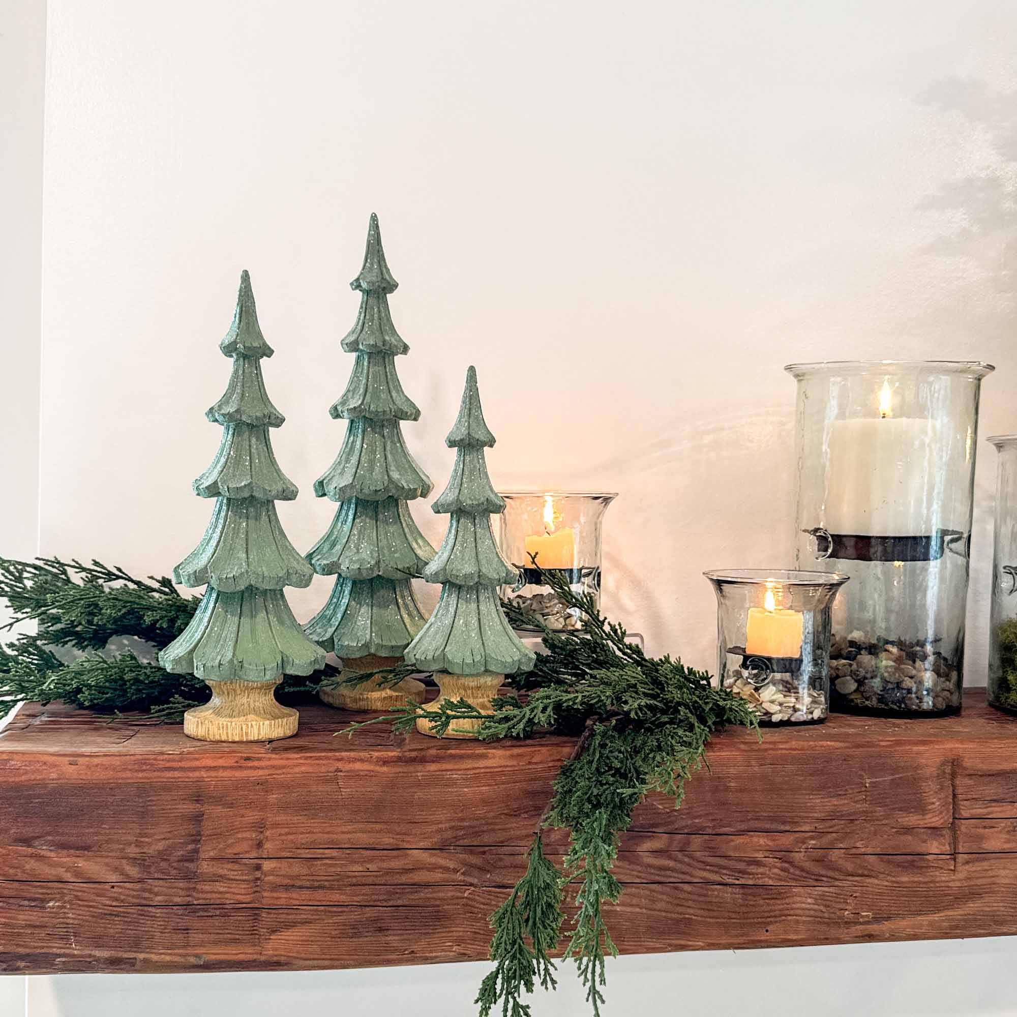 Sold as a set of three in graduated sizes, these decorative trees are perfect for layering on mantels, sideboards, or tabletops. Whether displayed on their own or paired with festive favorites like Santa figurines, winter deer, or snowy garlands, they add a peaceful, Scandinavian-inspired touch to your holiday decor.