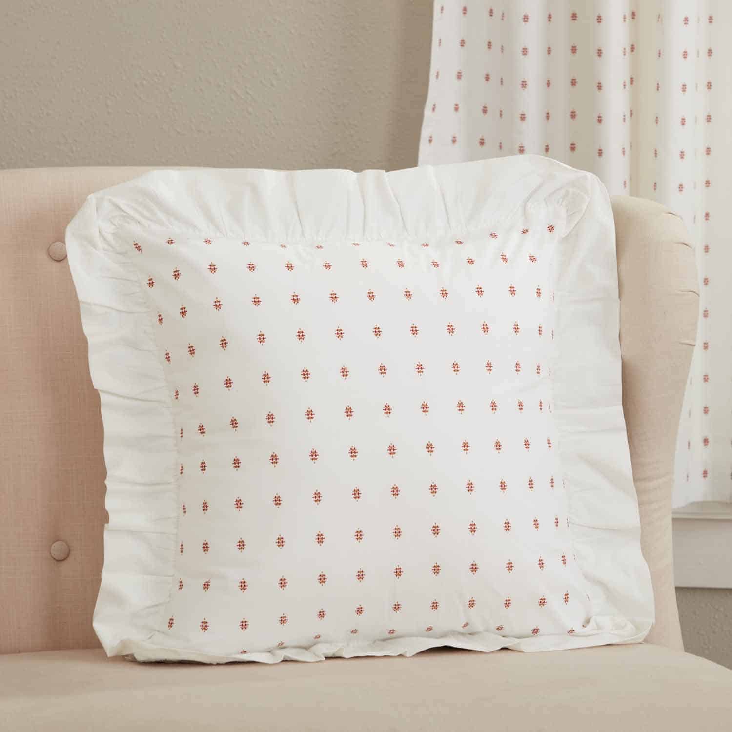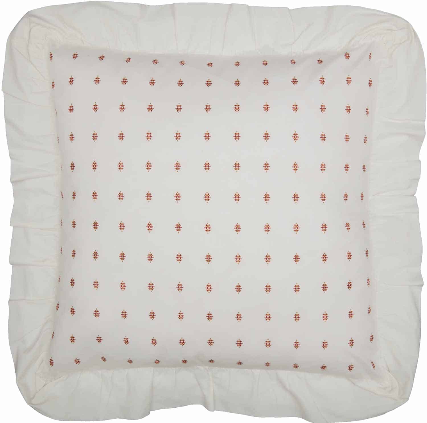 We know you’re going to fall in love with the Abigail Collection with its scaled-down symmetrical design in rich, warm tones that repeat in perfect rows across the fabric. The crisp white background accentuates the simple pattern and offers a fresh, clean finish that works beautifully with every design style. Lightweight, breathable cotton brings a sweet, stylish upgrade with graceful appeal that accents and enhances current home styles. The cover adds lovely softness and feminine flair to your vintage cottage or rustic farmhouse with gently gathered ruffles in a double layer of plain white sheeting fabric, surrounding the accent.
