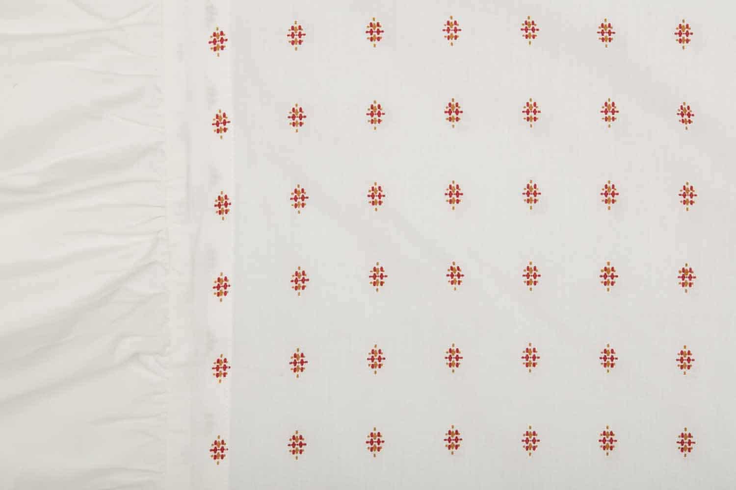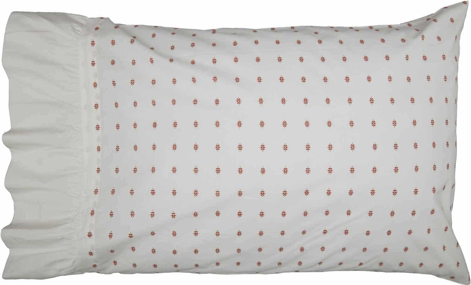 We know you’re going to fall in love with the Abigail Collection with its scaled-down symmetrical design in rich, warm tones that repeat in perfect rows across the fabric. The crisp white background accentuates the simple tiny pattern in brick red and gold that offers a fresh, clean finish that works beautifully with every design style. Lightweight, breathable cotton brings a sweet, stylish upgrade to your bedroom with a graceful appeal. The pillow cases add lovely softness and feminine flair to your vintage cottage or rustic farmhouse with generous, 5.0″ flowing ruffles in plain white cotton, on the open end of the accent. Cover reverses to same. Set/2.