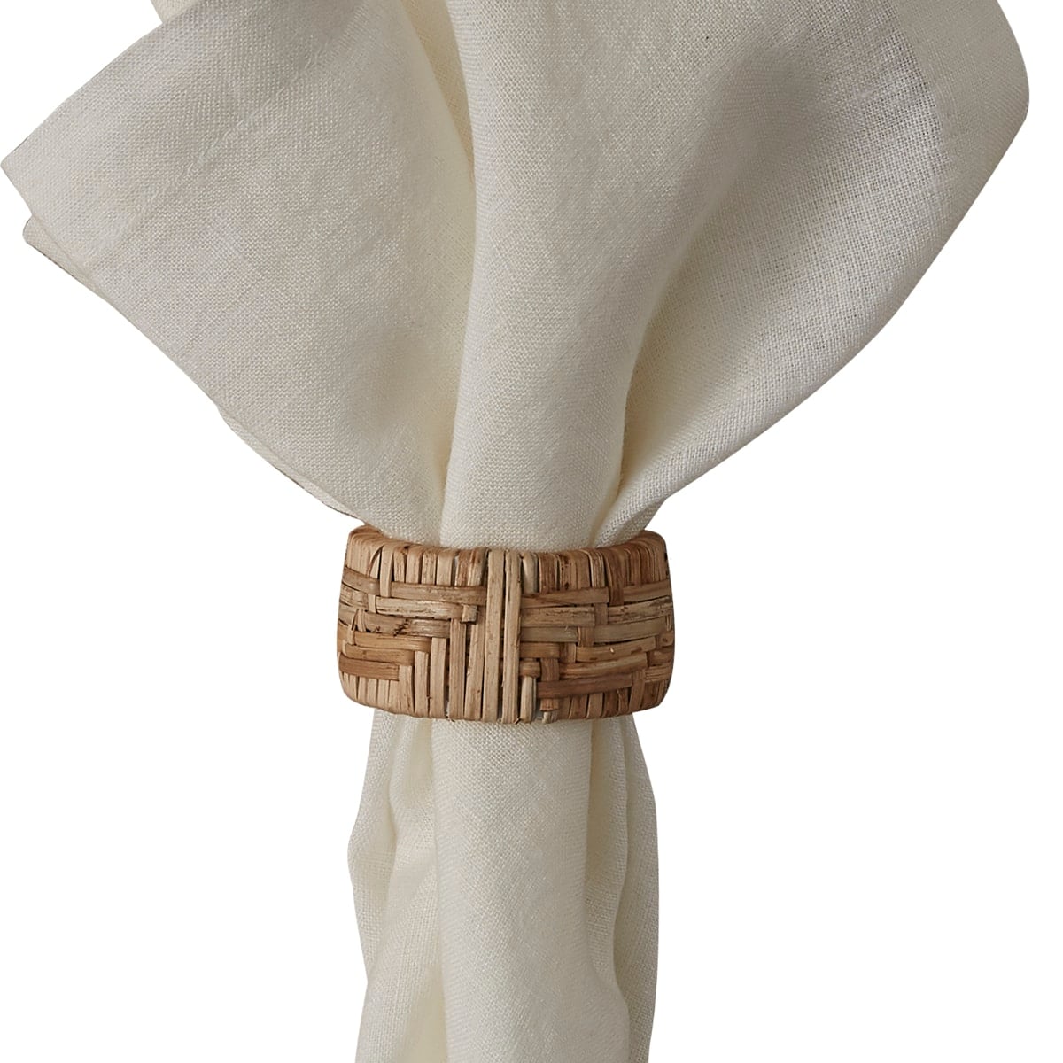 Bring a touch of natural texture to your table with this set of woven rattan napkin rings. Handcrafted from strips of rattan, each ring features a classic basketweave design that feels both timeless and versatile. The earthy tones and organic weave make them the perfect finishing touch for any tablescape, from casual family meals to seasonal gatherings and formal celebrations. Designed to keep napkins neatly in place, these rings combine style and function in one simple accent.