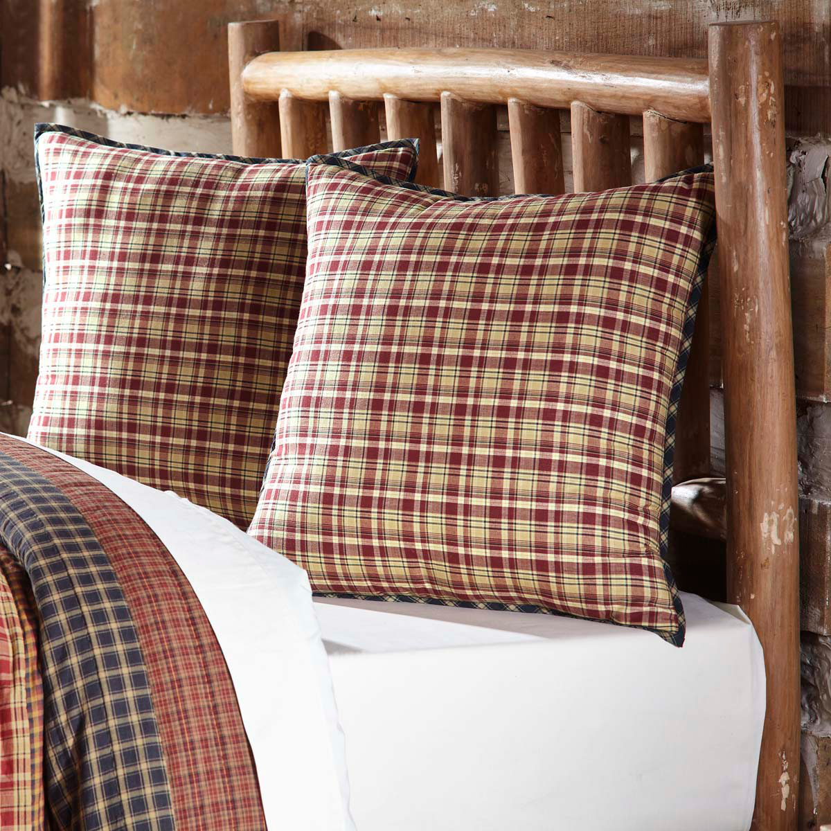 The Beckham Fabric Euro Sham is an extra-large sham perfect for your bedding ensemble or adding a touch of color to another room in the house. A rustic plaid displayed in beautiful shades of rust red, black, and tan plaid fabric a timeless, warm look that transforms your regular pillows. These oversized pillow covers make great floor pillows or add comfort to any seat! Beckham reverses to solid black and crème plaid fabric with three tie-closures; a 3″ overlap to conceal the pillow insert.