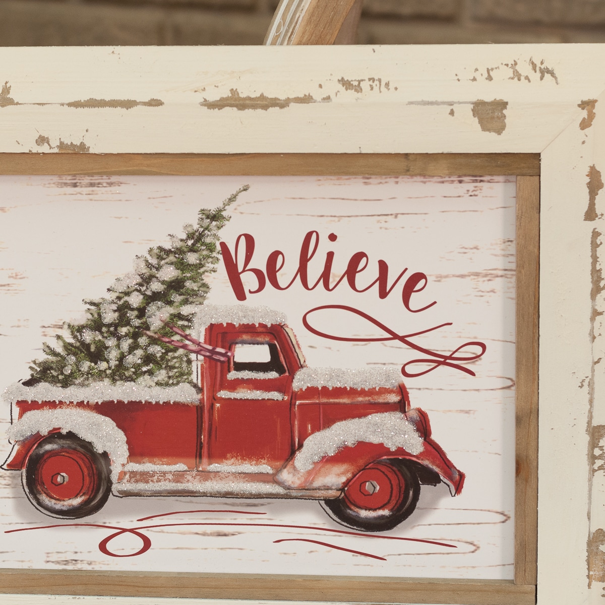We love adding a touch of old-fashioned charm and nostalgia with vintage trucks, especially at Christmastime!! Nothing sends us on a trip down memory lane like antique vehicles all dressed up in their holiday finest. With a Christmas tree in tow and accents of sparkling snow, this sign is the perfect addition to your holiday home. It’s easy to “Believe” in the magic of the season with a timeless accent like this. Sure to become a favorite for years to come.