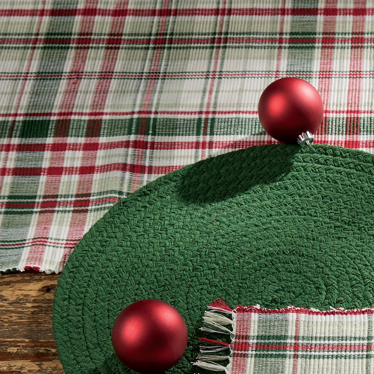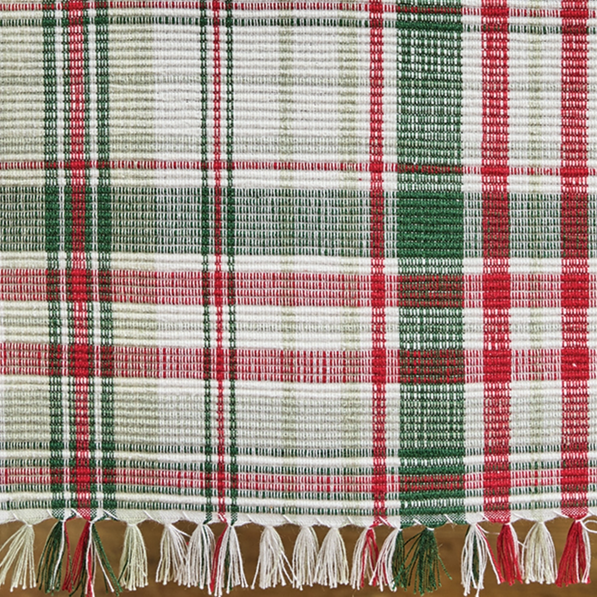 Make a seasonal statement with the 72″ Berry Frost Table Runner. Crafted from 100% cotton, this runner showcases a rich blend of holiday-inspired hues in a woven design that adds warmth and subtle texture. Perfect for longer tables or layered centerpieces, it’s finished with fringe on one end for a touch of relaxed elegance. A versatile choice for everything from formal holiday feasts to casual winter dinners.
