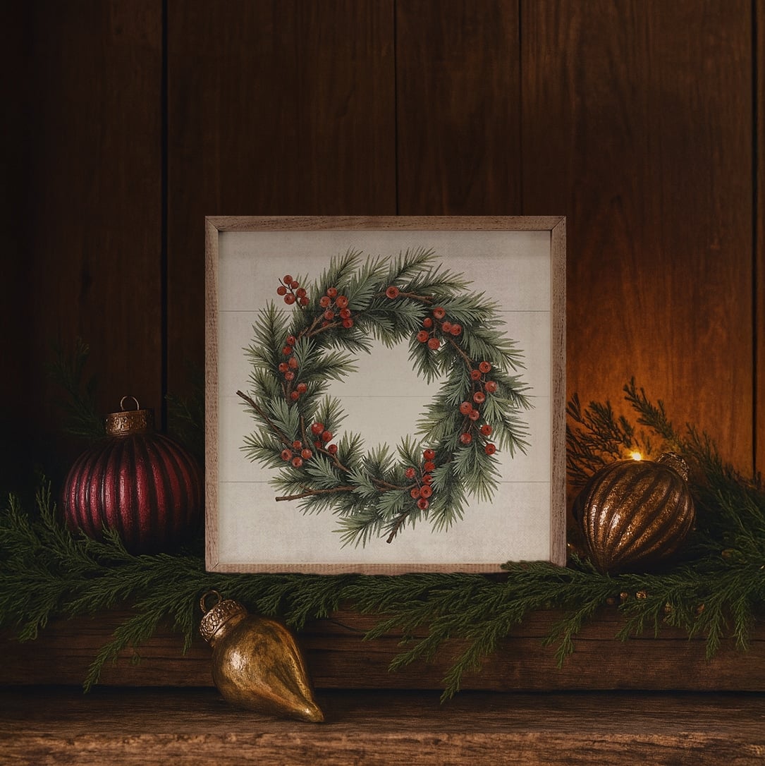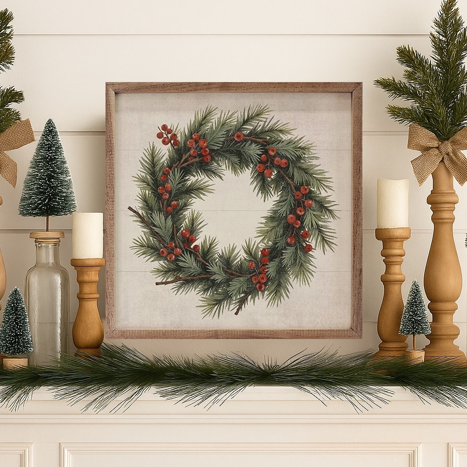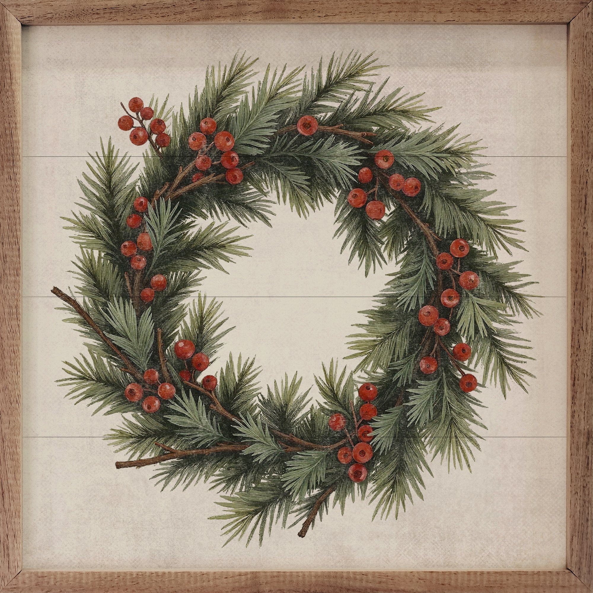 Celebrate the warmth of the season with the Berry Pine Wreath Wooden Sign, a timeless accent that brings nature-inspired beauty to your holiday home. Featuring a lush pine wreath adorned with vibrant red berries, this sign is framed in rustic wood and set against a light plank-style background for a cozy, farmhouse feel. Whether hung in an entryway, above a mantel, or layered into a gallery wall, it adds a festive touch that feels both classic and fresh. Signs are made to order.