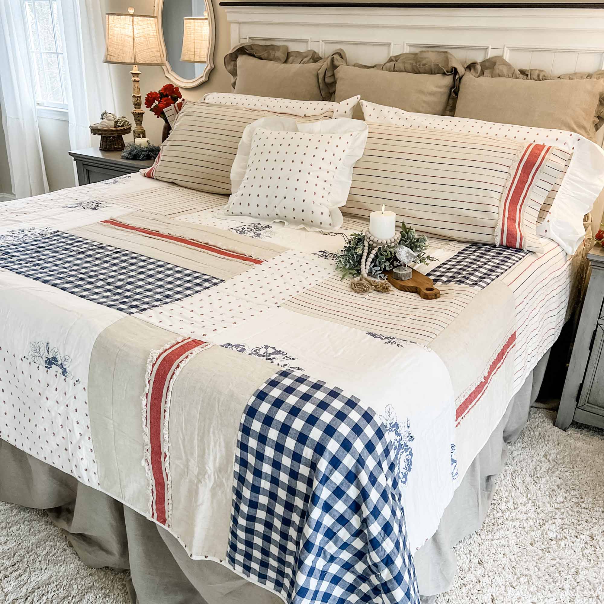 Coordinate the pillow cases with other pieces of the collection for a layered look that is personal and unique. Be sure to browse through the entire Betsy Originals to see other options for repeating the pattern throughout your farmhouse. See the Lydia Blue and Vintage Check Blue Collections also, as these feature fabrics in the Betsy Collection.
