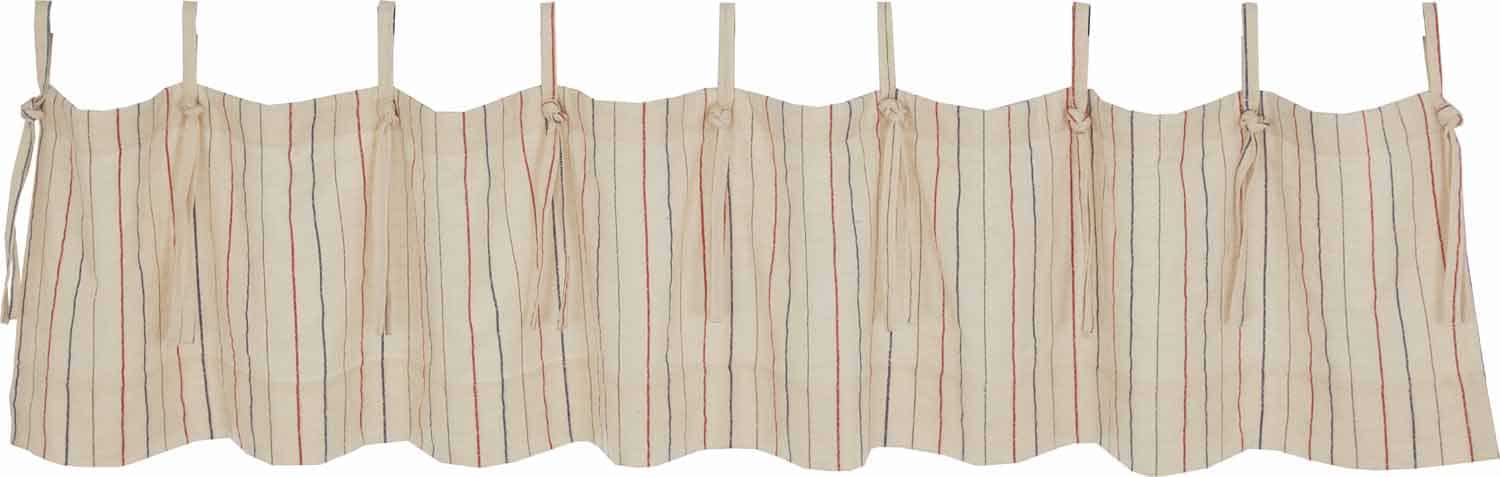 Add sweet simplicity to your farmhouse windows with the easy-going, casual style of Betsy Stripe Panels. The cream fabric is dressed up in thin vertical stripes of red, blue and gray and the design seems to echo a love of flag and country in an innovative, understated design. The material is relaxed in its style with a slubbed appearance, (occasional raised threads) but the stripes bring a lovely regularity and graphic appeal that is fresh and crisp.