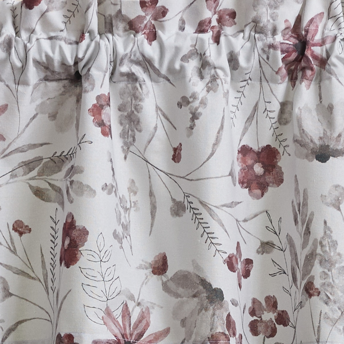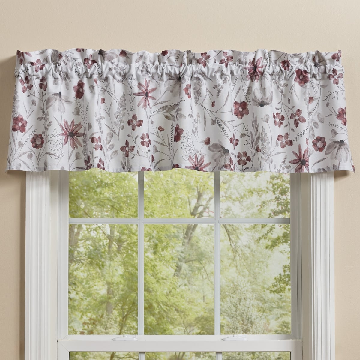 Frame your windows with the romantic charm of the Bianca Valance. Featuring a graceful floral print in merlot, pink, and gray tones, this 100% cotton valance adds a soft, airy feel to kitchens, breakfast nooks, or guest rooms. Its gentle gather and rod pocket design make it easy to hang and style.