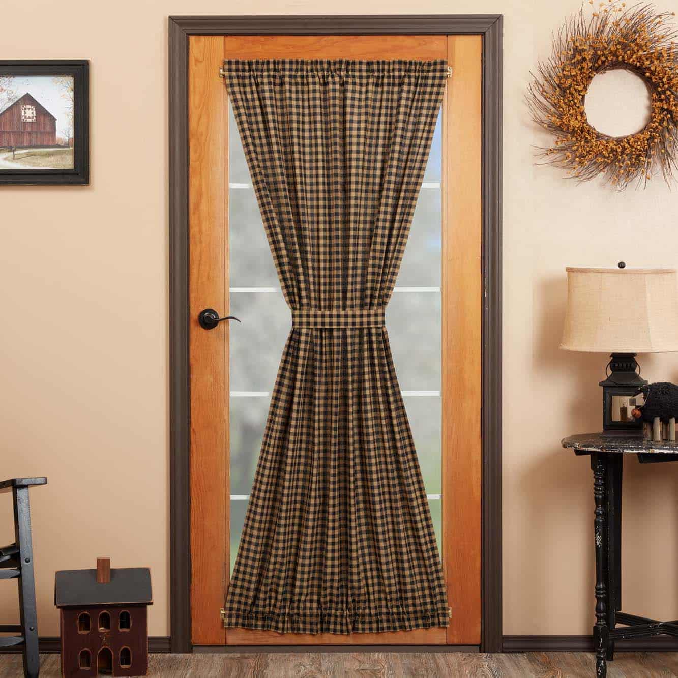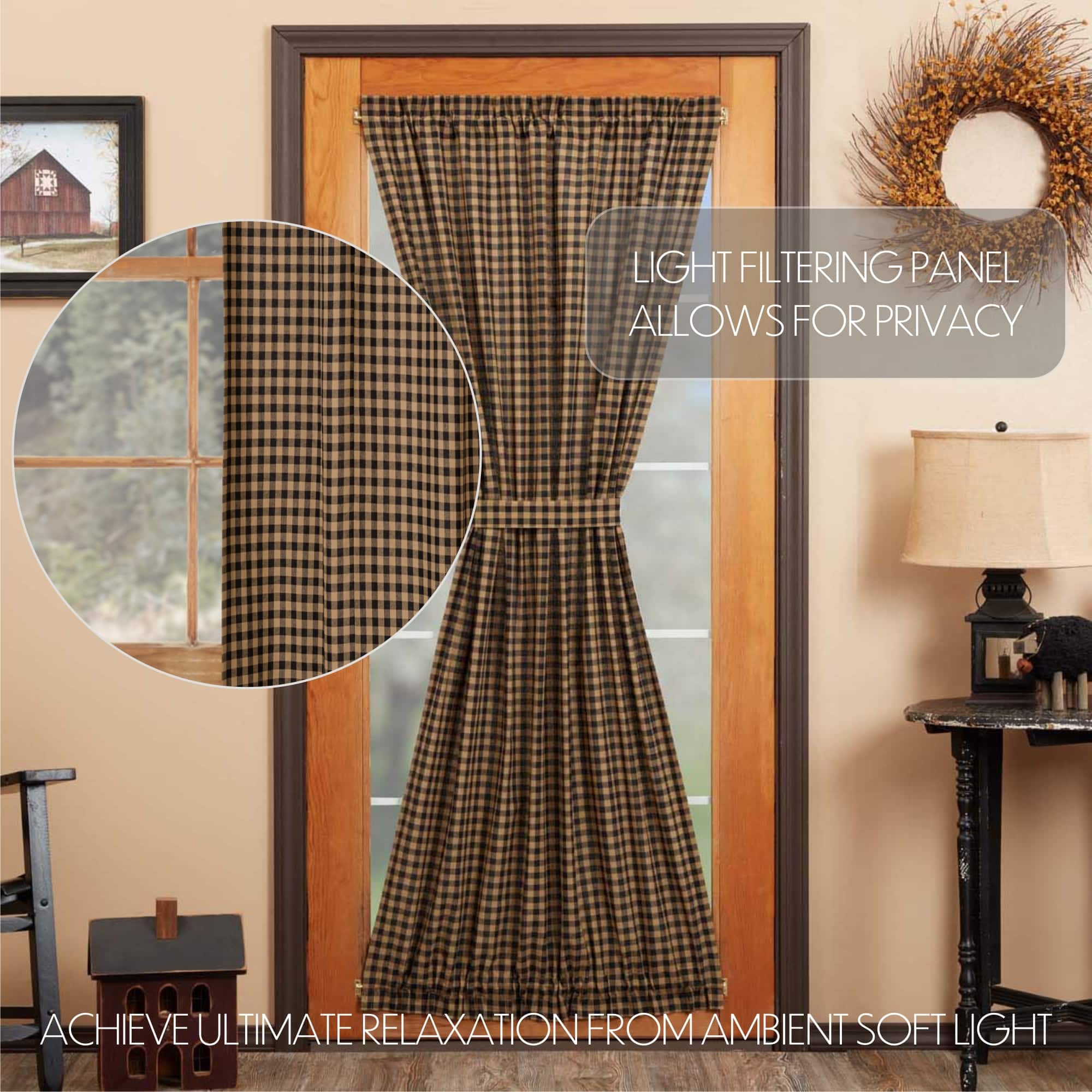 Add timeless country charm to your home with the Black Check Door Panel, a classic accent piece that blends style and function. Measuring 72 inches long by 40 inches wide, this door curtain showcases a traditional check plaid pattern in raven black and khaki tan, offering a warm, primitive aesthetic perfect for farmhouse or rustic décor. Crafted from 100% cotton and lined for light filtering and added privacy, this panel strikes the perfect balance between softness, structure, and utility. A 2-inch rod pocket makes for quick and easy hanging, while the coordinating design complements other pieces in the Black Check Collection. Whether dressing up a French door, pantry entrance, or glass patio door, this panel enhances your space with vintage-inspired comfort and style.
