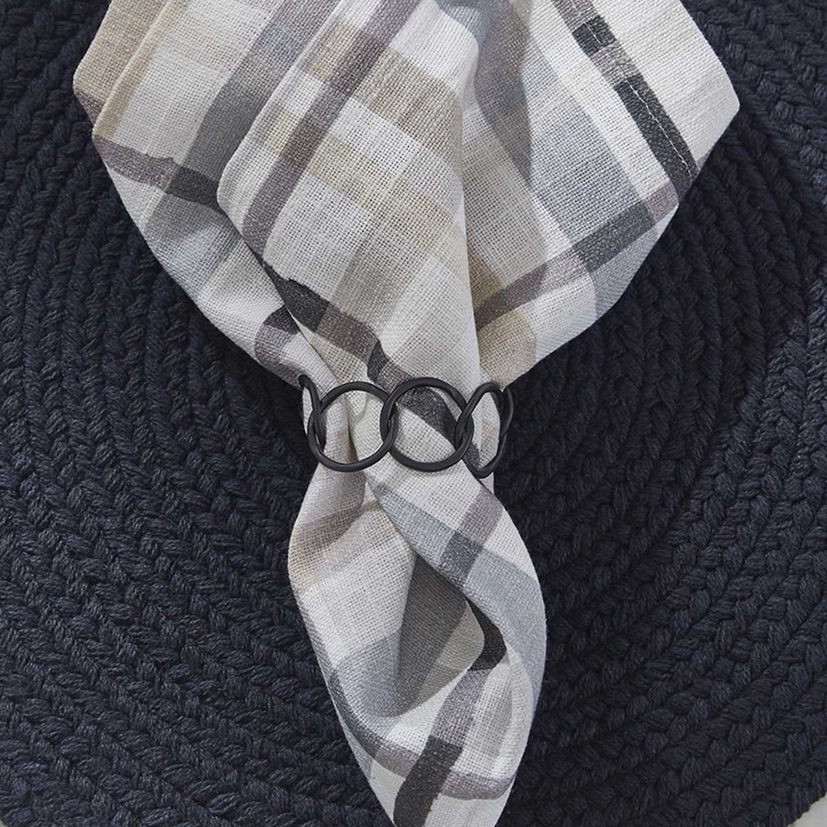 Add a sophisticated and stylish touch to your dining table with this set of four Black Circle Link Napkin Rings. Featuring an eye-catching chain-inspired design, each ring is crafted from high-quality metal with a sleek black finish, effortlessly blending with both modern and traditional décor.