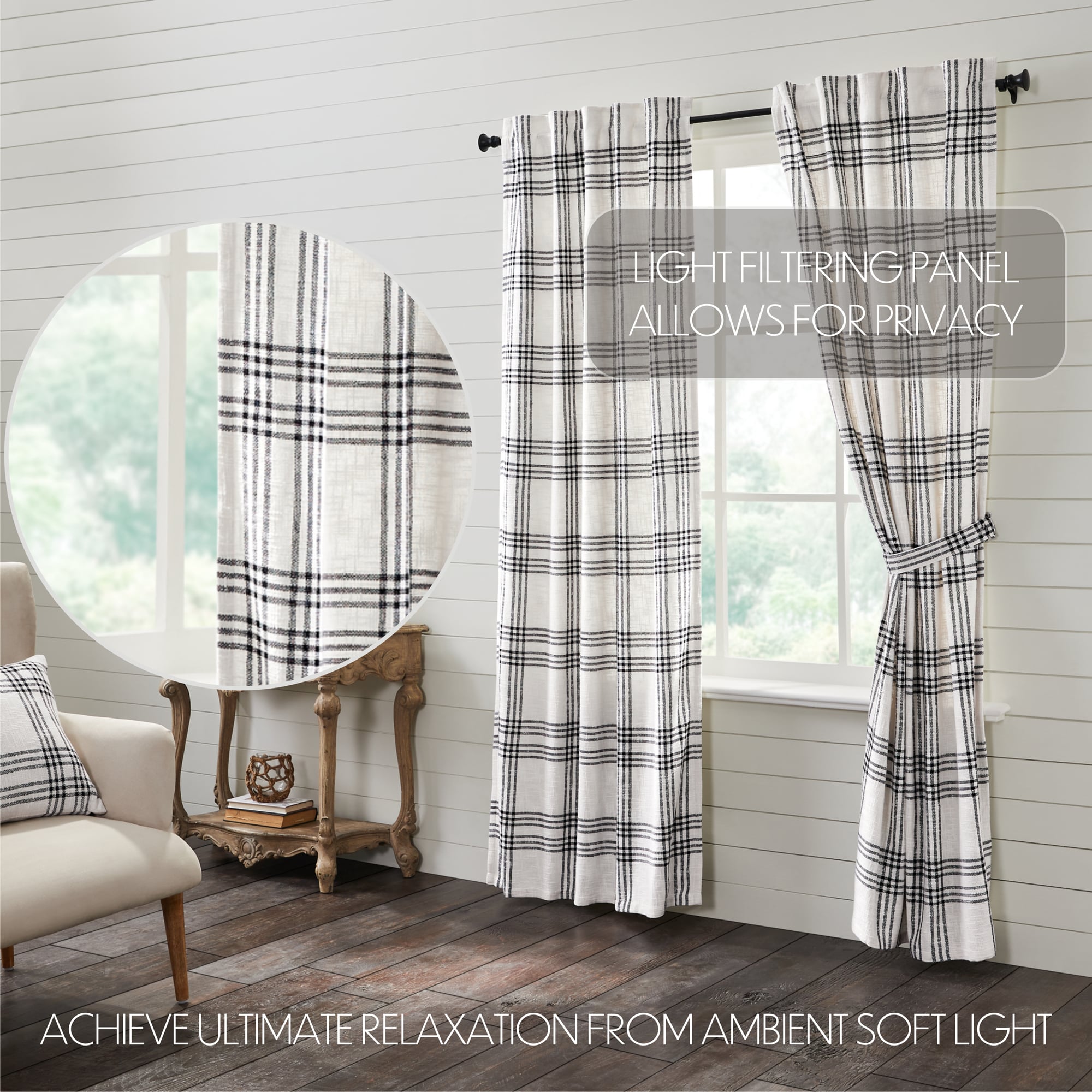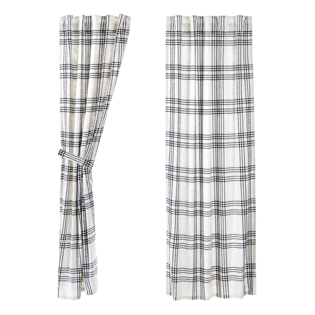 Bypass the glare of the sun while adding farmhouse decor to your windows with the Black Plaid Panel. Soft white cotton lines the inside of the panels with a straight edge, textured woven technique that showcases the beautiful soft black and white hues. Easily hang the cottage-style plaid panel set with either the 3.25” diameter rod pocket or back tabs. Set/2.