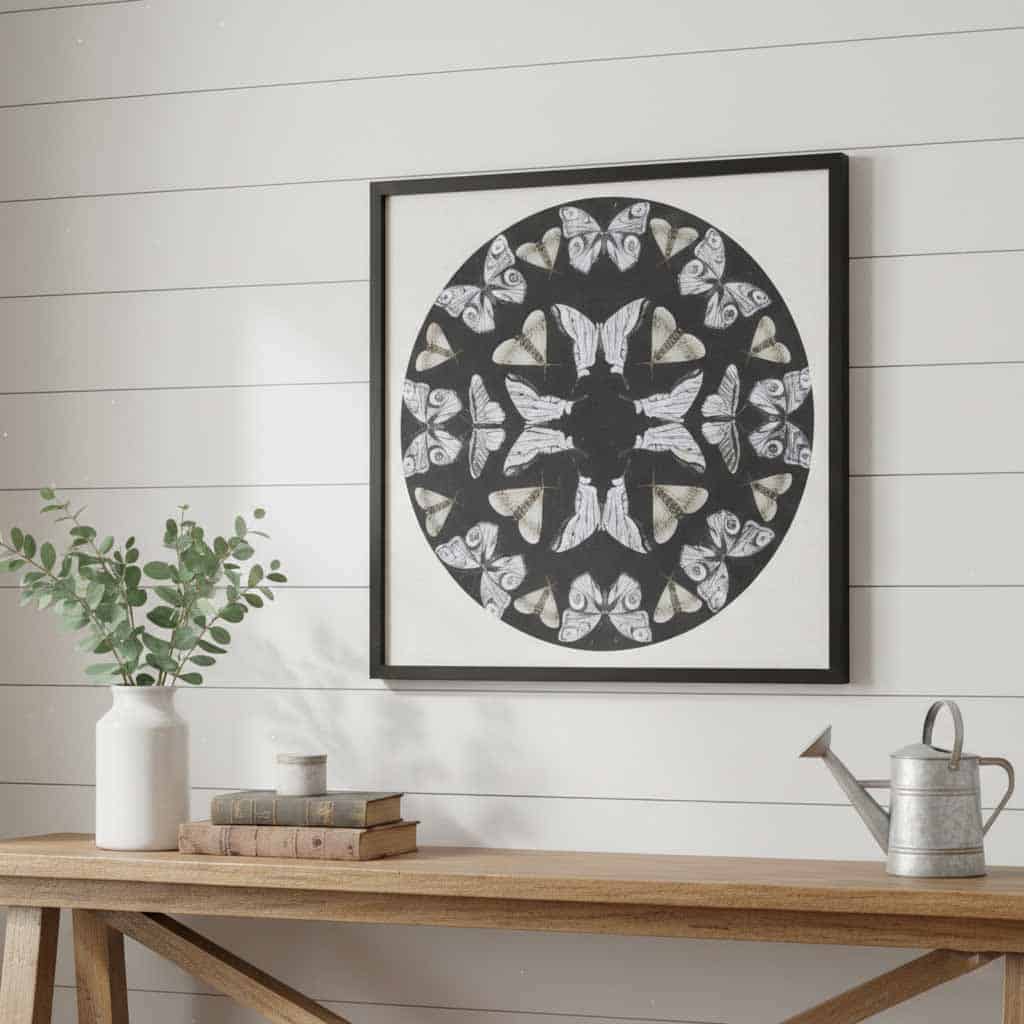 Set behind protective glass and framed in a sleek, lightweight plastic frame, this wall art offers both beauty and durability. Its balanced composition and generous size make it ideal for hanging above a mantel, sofa, or console table, while also working beautifully as a thoughtful gift for nature lovers. Timeless and understated, this butterfly print captures the quiet beauty of the natural world in an elevated, gallery-style presentation.