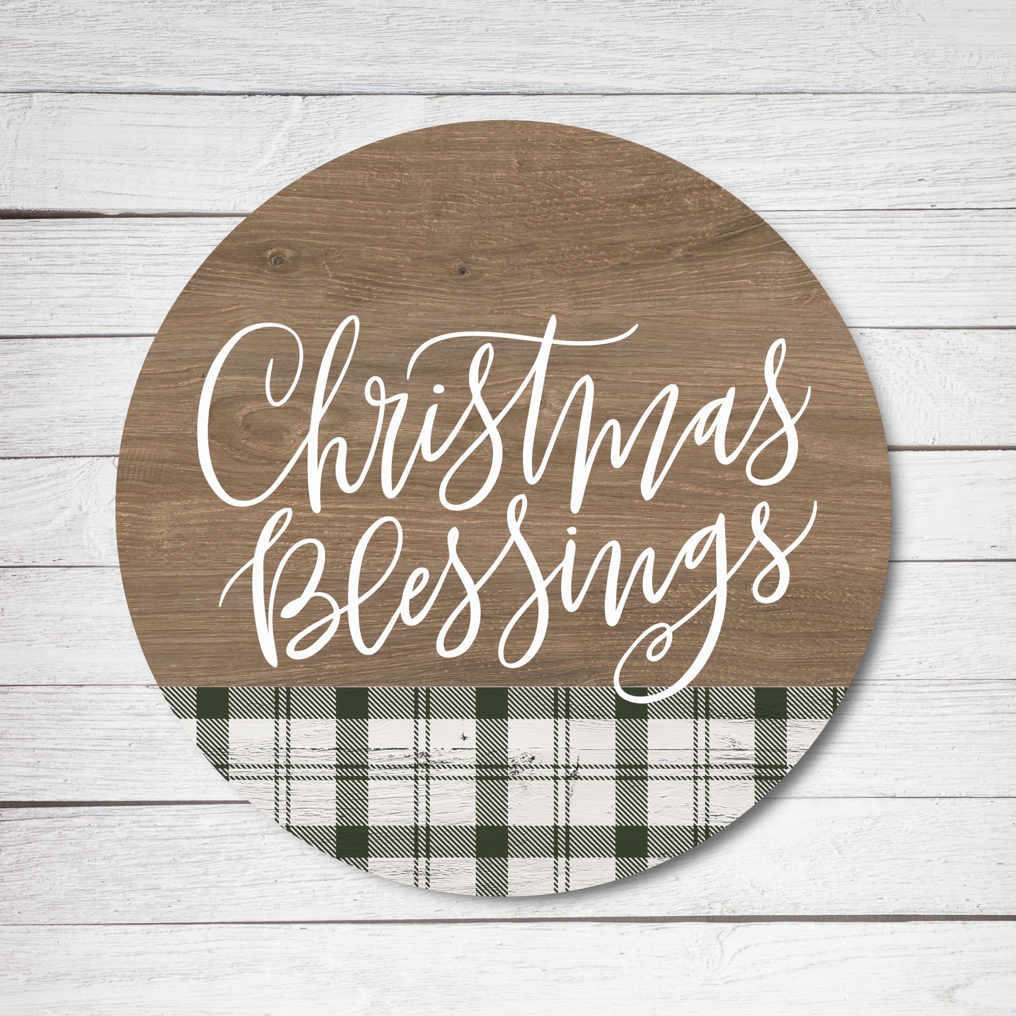 The Christmas Blessings Plaid Circle Wooden Sign brings contemporary style to your holiday home with sweet rustic flair. Raw, natural wood sets the tone as the background, accentuating crisp white cursive lettering perfectly. The bottom third of the sign is dressed in white and black plaid, offering the comfort and tradition of a favorite pattern in modern, neutral tones. Stylish yet simple is the order of the day with this simple accent, perfect for today’s modern decorating styles. The frameless sign offers a crisp, up-to-date appearance that will blend into every setting. Signs are made to order.