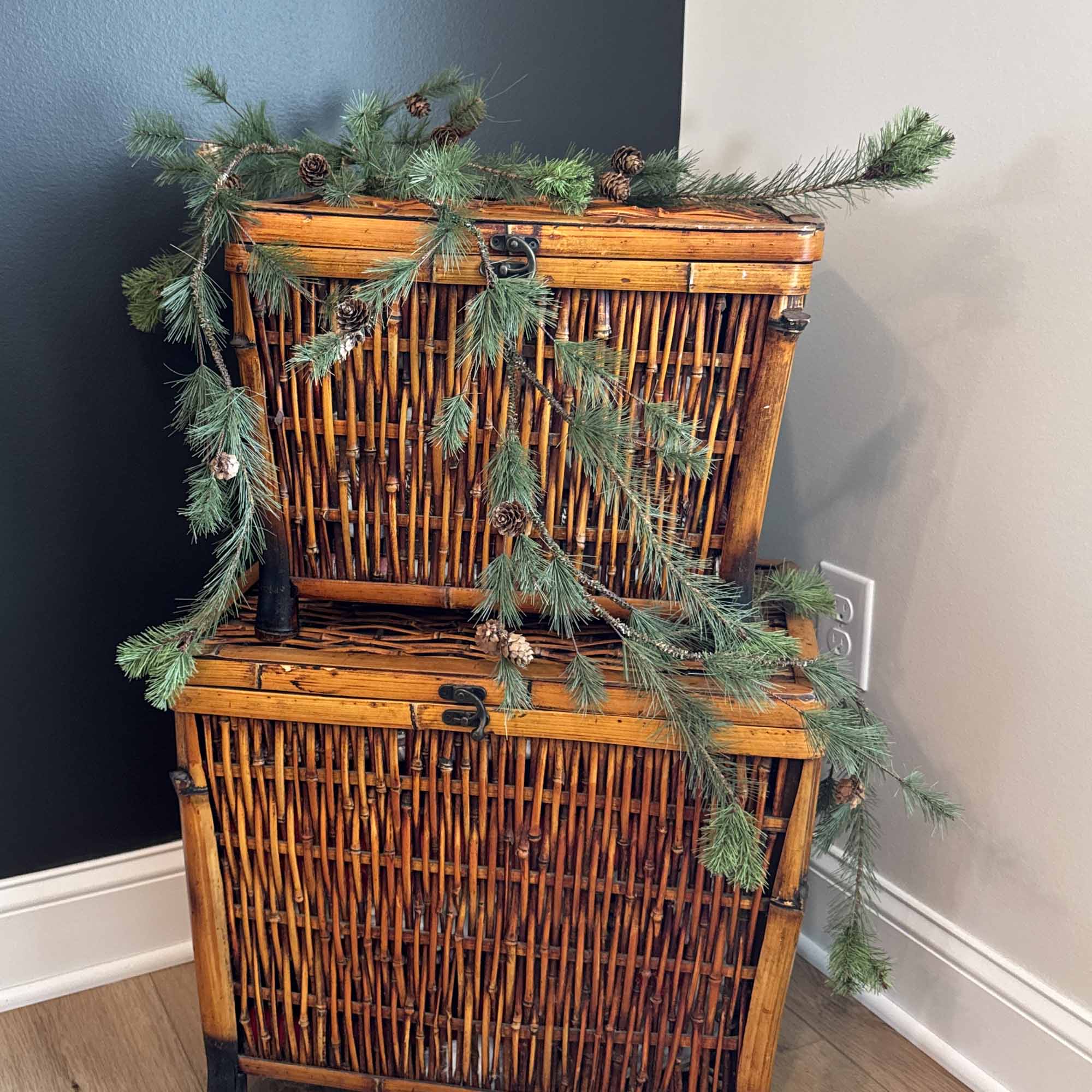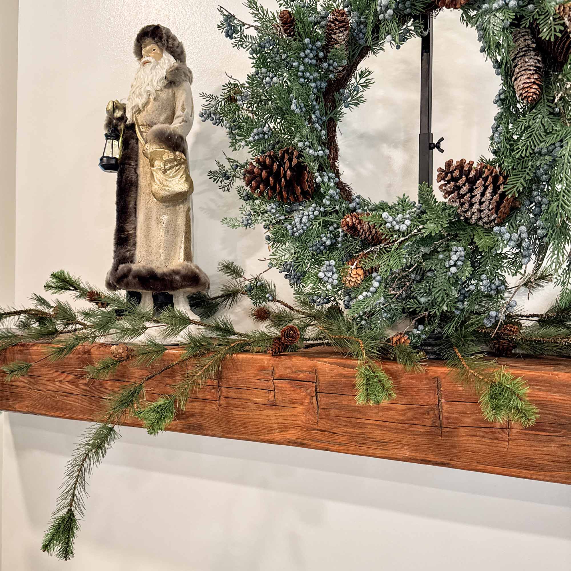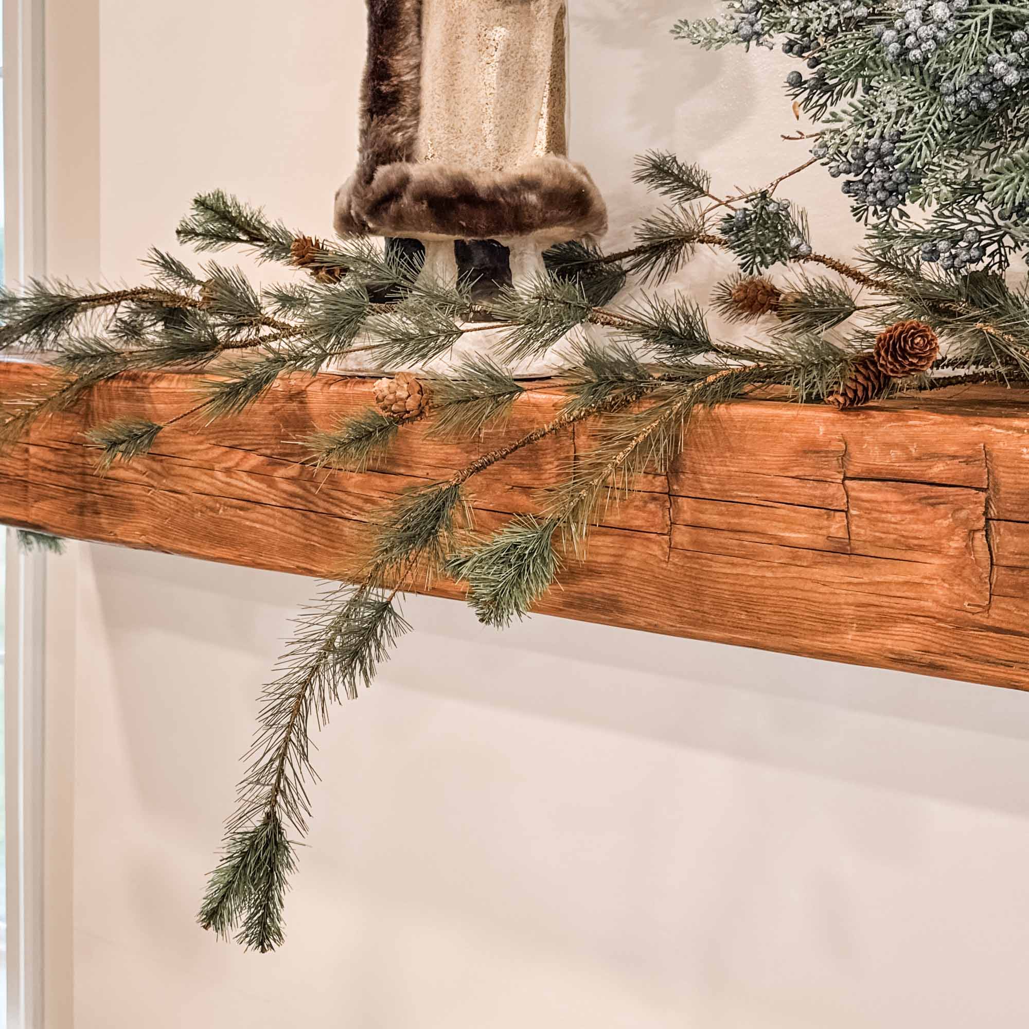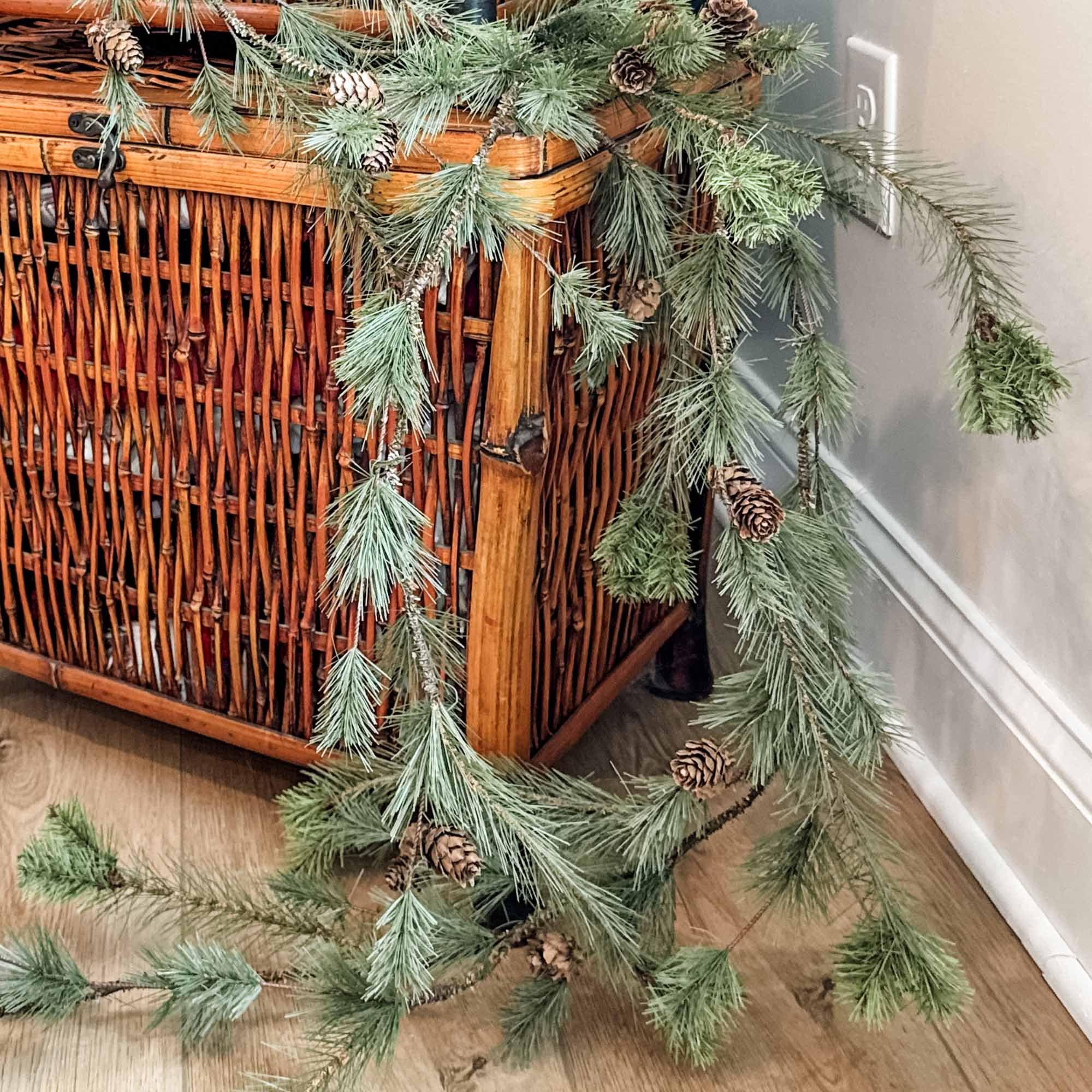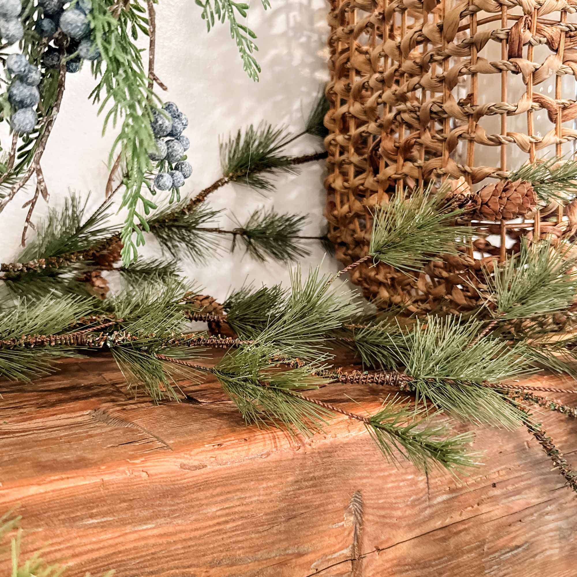 Each garland features rich, earthy green pine foliage with clusters of miniature pinecones, capturing the natural beauty of a forest in winter. The lightly draping, airy structure mimics the look of real pine boughs, bringing an effortless woodland feel to your décor.