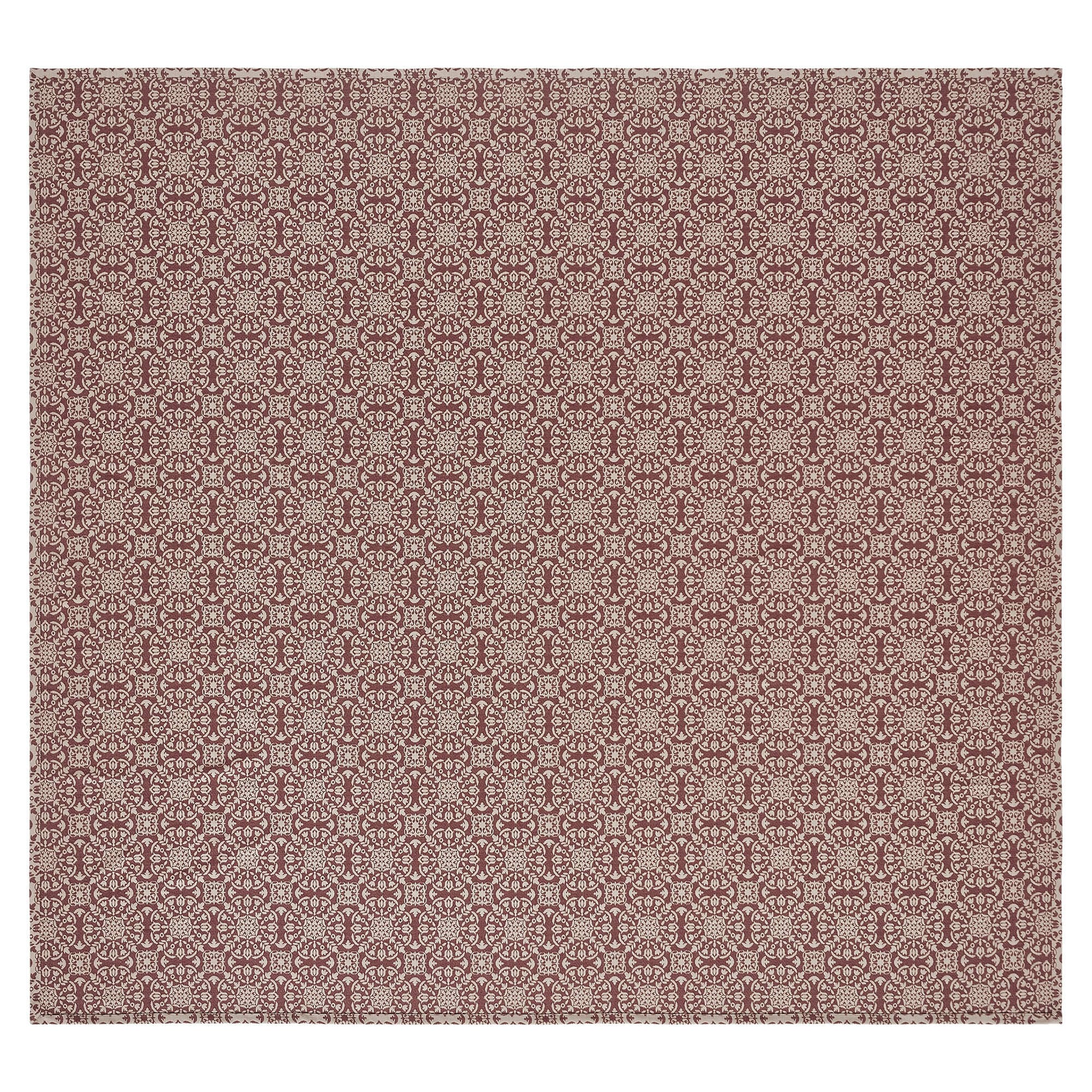 This exquisite coverlet is the epitome of rustic charm, featuring a medallion pattern that exudes primitive and country vibes. Crafted from recycled cotton yarn and boasting a waffle-textured design, this machine-washable coverlet combines sustainable materials with effortless maintenance for the perfect bedroom addition. With its lush and inviting feel, this woven coverlet adds a cozy touch to your primitive-inspired bedding ensemble. The burgundy and tan medallion design and jacquard weave create an old-world charm with a primitive style. Whether draped over your bed or used as an extra layer of warmth, this coverlet is a versatile choice for prim-style bedding and bedroom decor that stands the test of time. Our Custom House Burgundy Tan Jacquard Coverlets are made of 100% cotton.