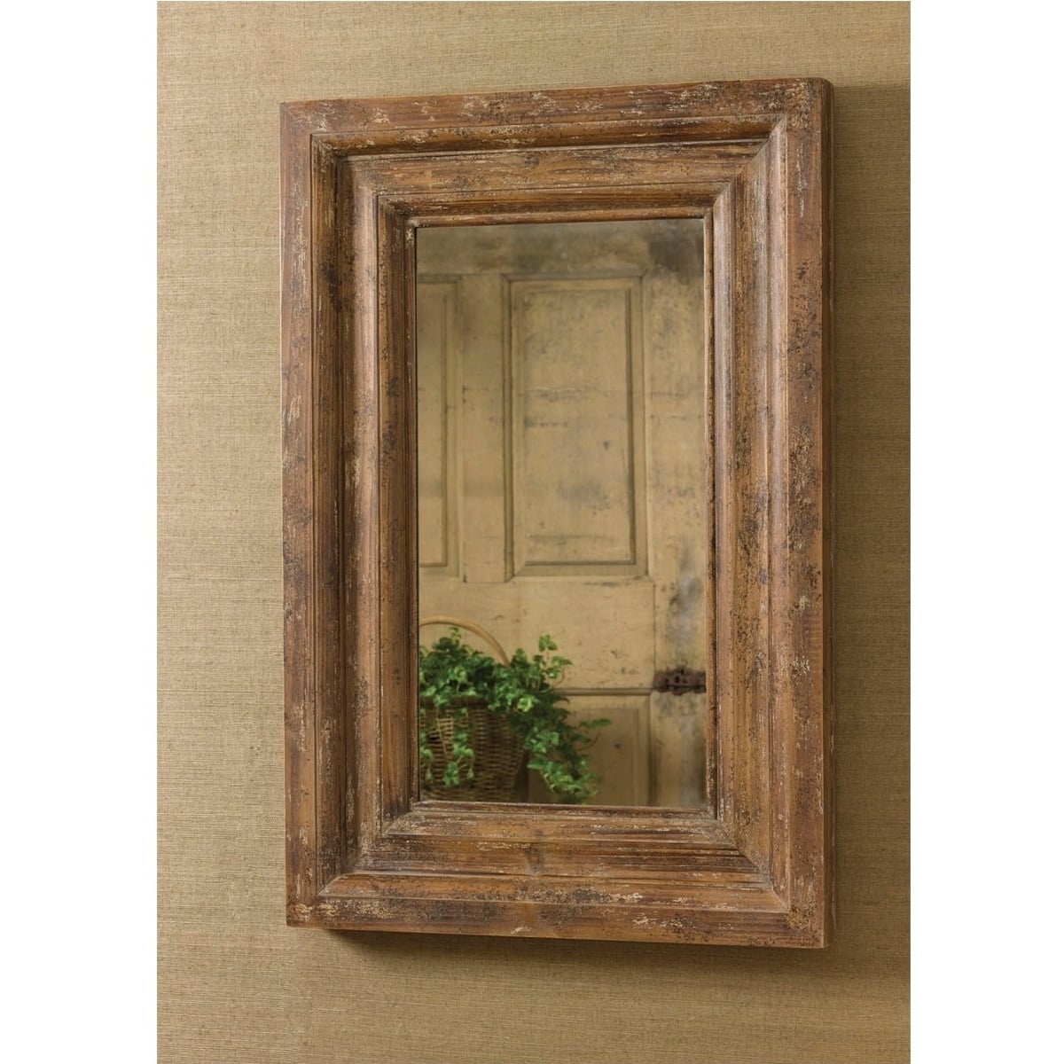 Bring rustic warmth and timeless character to your space with the Distressed Wood Mirror. This handsome wall mirror features a wide wood frame with rich, layered distressing that gives it the look of a treasured antique. The weathered finish adds dimension with earthy tonal hues, making it a versatile accent that complements farmhouse, vintage, cottage, or traditional decor.