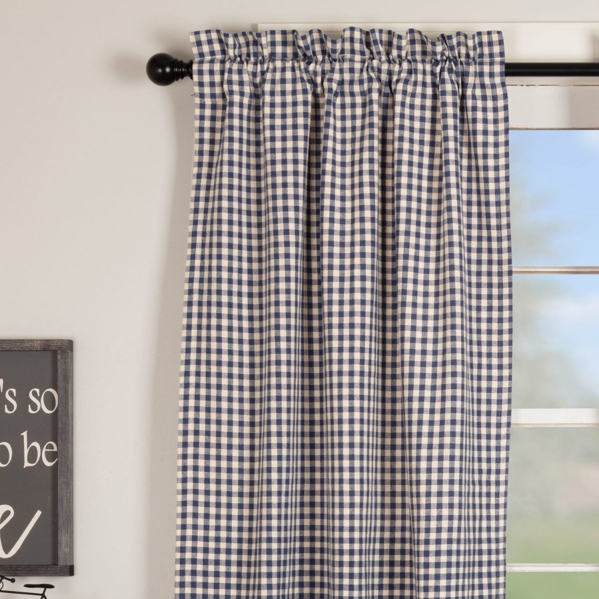 The Doylestown Check Panels feature a rich blue and cream gingham fabric that is sure to add a fresh, happy look and charming energy to your country cottage or vintage farmhouse. The check fabric will coordinate and complement other pieces in the collection perfectly. From grain-sack and stripes to florals and solids, you can mix and match the tiers with other curtains, bedding, and linens in the Doylestown Collection, creating your own unique style. 100% cotton.