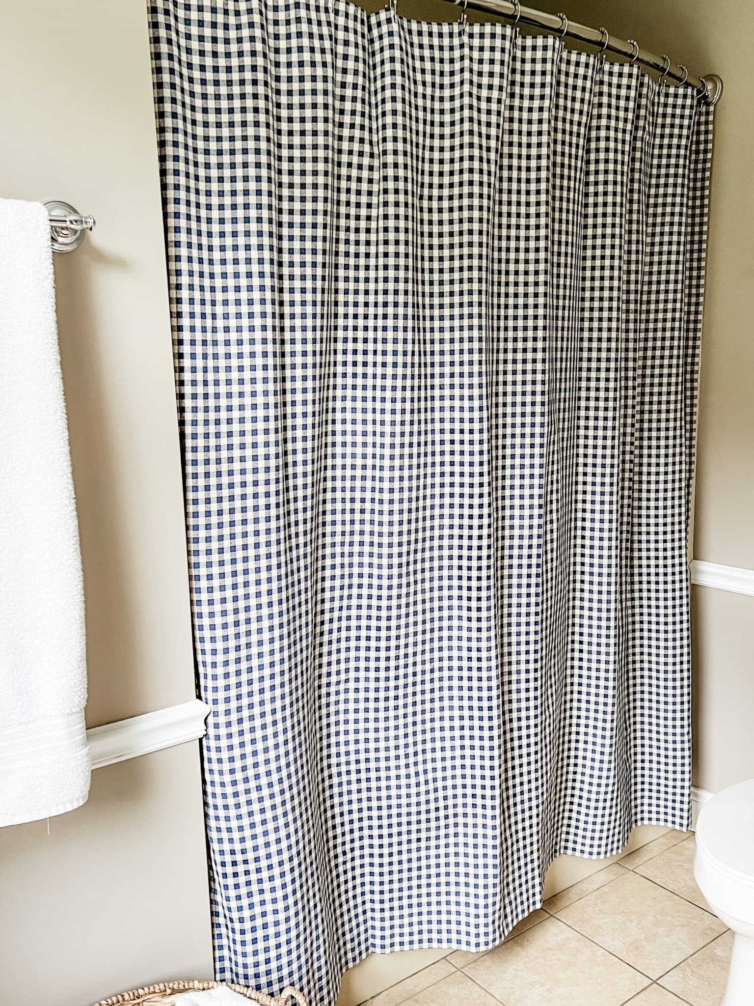 The Shower Curtain features a rich blue and cream gingham fabric that is sure to add a fresh, happy look and charming energy to your cozy cottage or farmhouse bathroom. There’s something old-fashioned about this dynamic check pattern, that also offers an energetic, fresh vibe. The deep blue and cream tones offer a time-honored color palette that is bold, with a crisp, clean look, adding flair to your current farmhouse decor. The curtain has a 1.0″ header and offers a 3.0″ rod pocket for the shower rod and traditional button holes for shower hooks. We recommend a liner to keep your shower curtain and floor protected.
