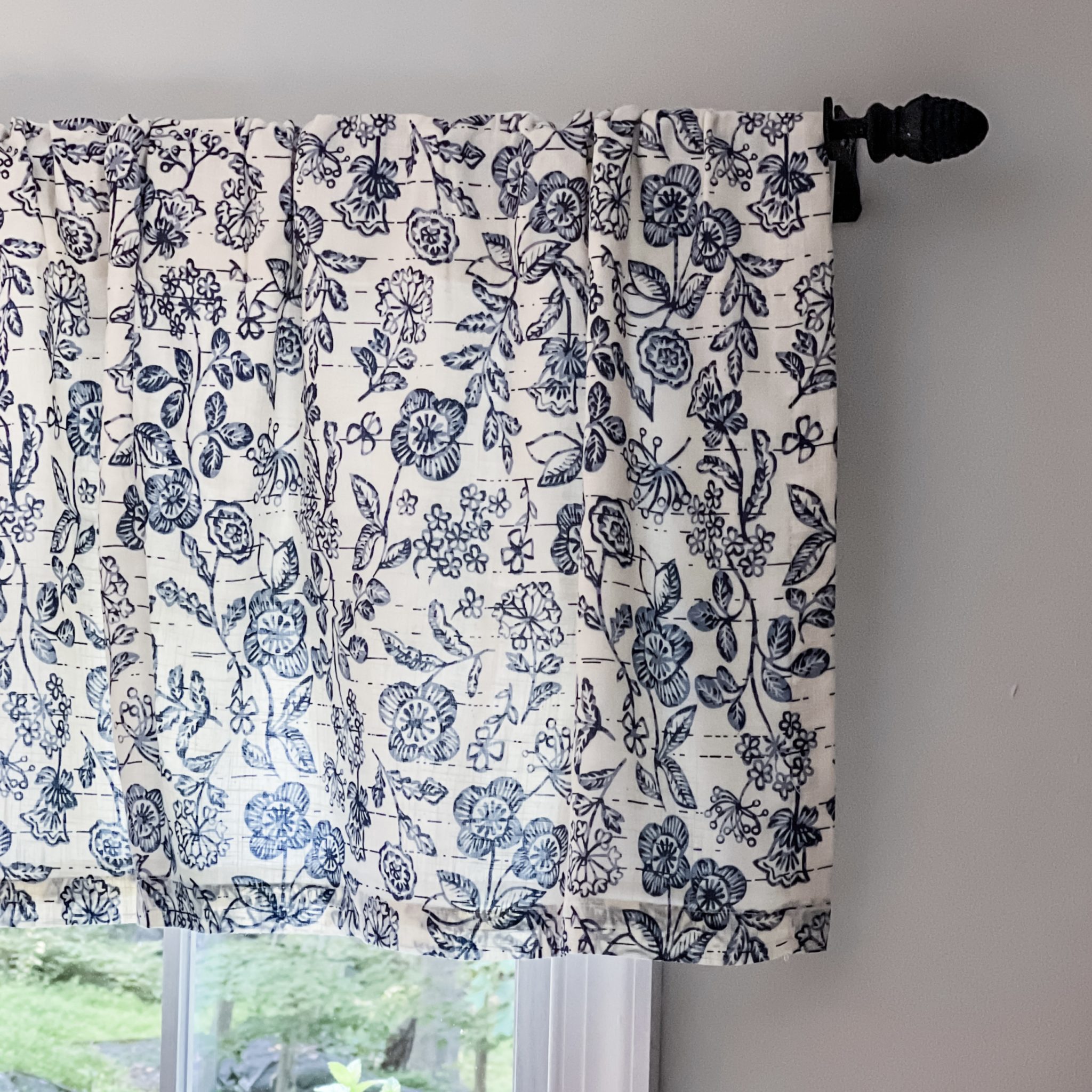 The Doylestown Floral Valance features rich and dusty blues on a warm, cream background. The delicate flower details coordinate and complement the other pieces in the Doylestown Collection. Updated and fresh, these curtains are made of lightweight cotton, which brings an airy look with energy and movement to your cozy cottage or vintage farmhouse. From grain-sack and stripes to gingham checks and solids, you can mix and match the valance with other curtains, table linens, and bedding, creating a unique, coordinated style throughout your home. 100% cotton.