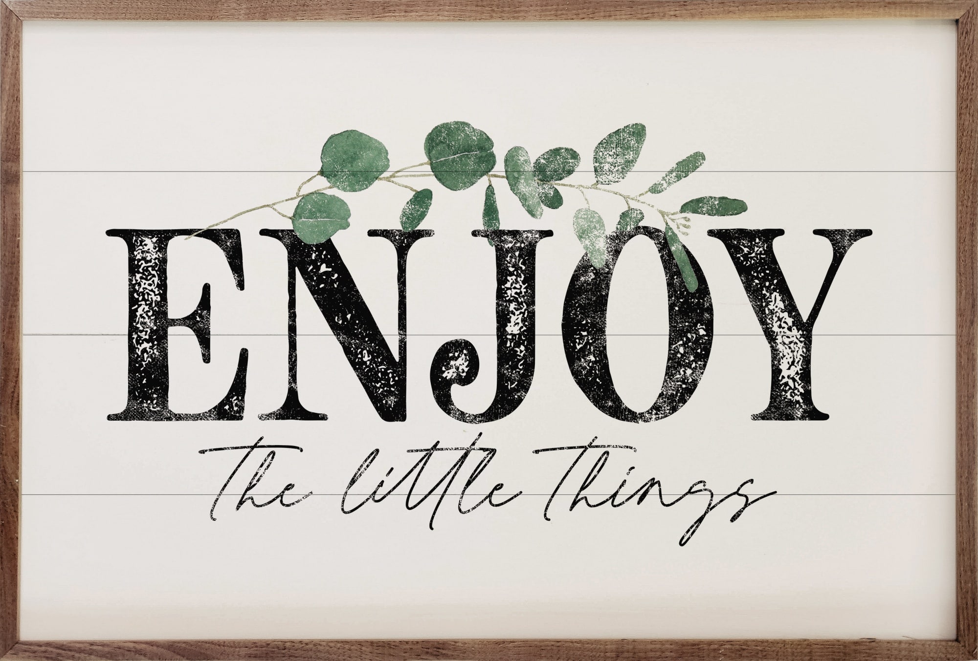 The Enjoy the Little Things Greenery Wooden Sign is a charming reminder to appreciate life’s simple joys. Featuring a rustic distressed black font accented with delicate green eucalyptus leaves, this sign blends natural beauty with farmhouse appeal. The warm wood frame and subtle shiplap-style background enhance its timeless look, making it a perfect addition to any kitchen, entryway, or living space. Whether hung on a wall or styled on a shelf, this piece adds a touch of inspiration and warmth to your home décor.