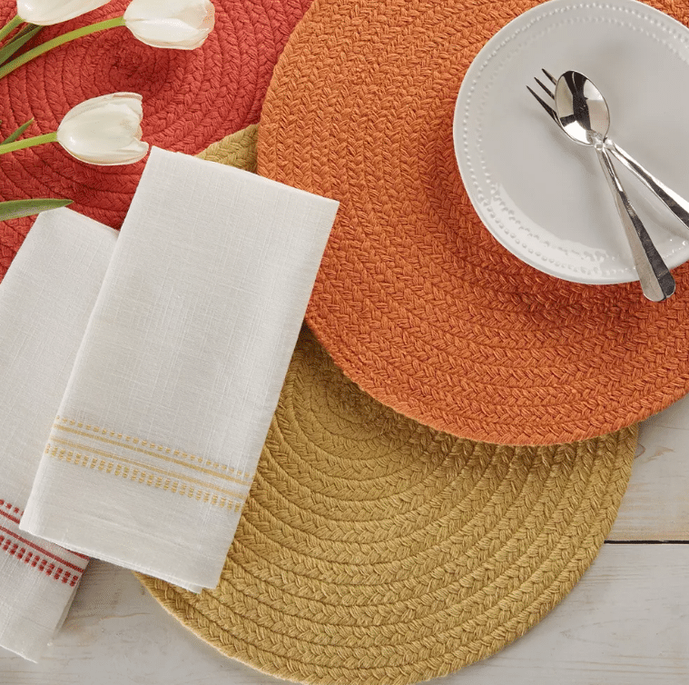 Add warmth and softness to your table with the Essex Cornsilk Round Placemats. This set of four features thick, braided cotton in a mellow golden-beige tone that feels like late summer sunshine. The simple, round design adds cozy texture and timeless appeal, making it an easy choice for everyday dining or relaxed gatherings. Whether you’re setting the table for breakfast or layering under a centerpiece, these placemats offer both charm and functionality. Sold as a Set/4
