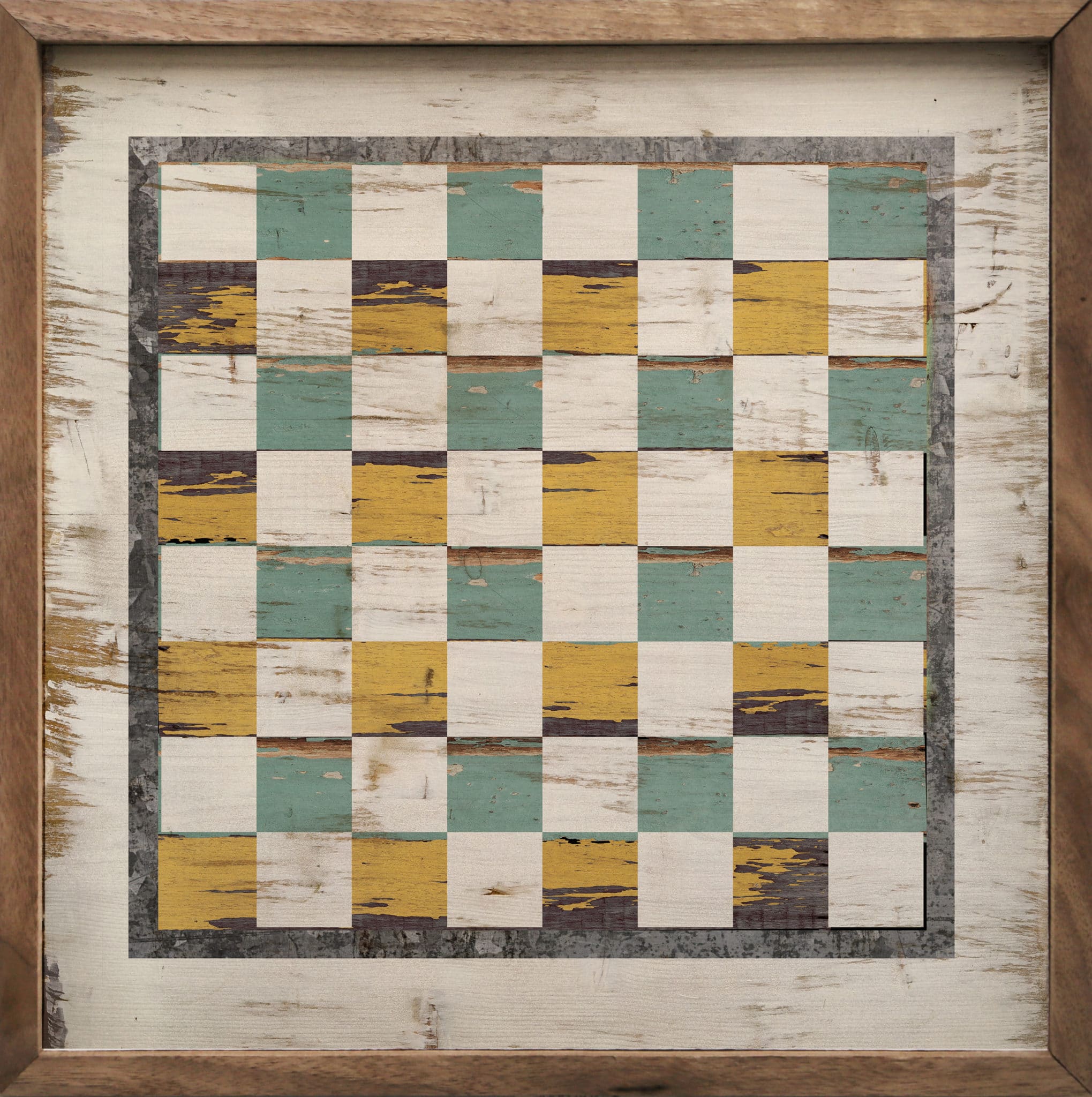 Remember the primitive game boards in days gone by? We thought it was time to give those cool old game boards a fresh farmhouse look! So we designed a collection of gameboard signs with a weathered vintage feel that’s updated for today’s modern farmhouse home. Each gameboard design is gorgeous on its own, or group a few together for a stunning wall display. Each square gameboard is available in a variety of sizes so you can order the size that works best for your space. The Farmhouse Checkers gameboard features mustard and blue-green squares on an antique white “weathered” board with a gray border. Our gameboards are designed as wall decor, so they do not come with game pieces. However, we think a handful of old buttons would work perfectly when you’re ready to challenge someone to a fun game!