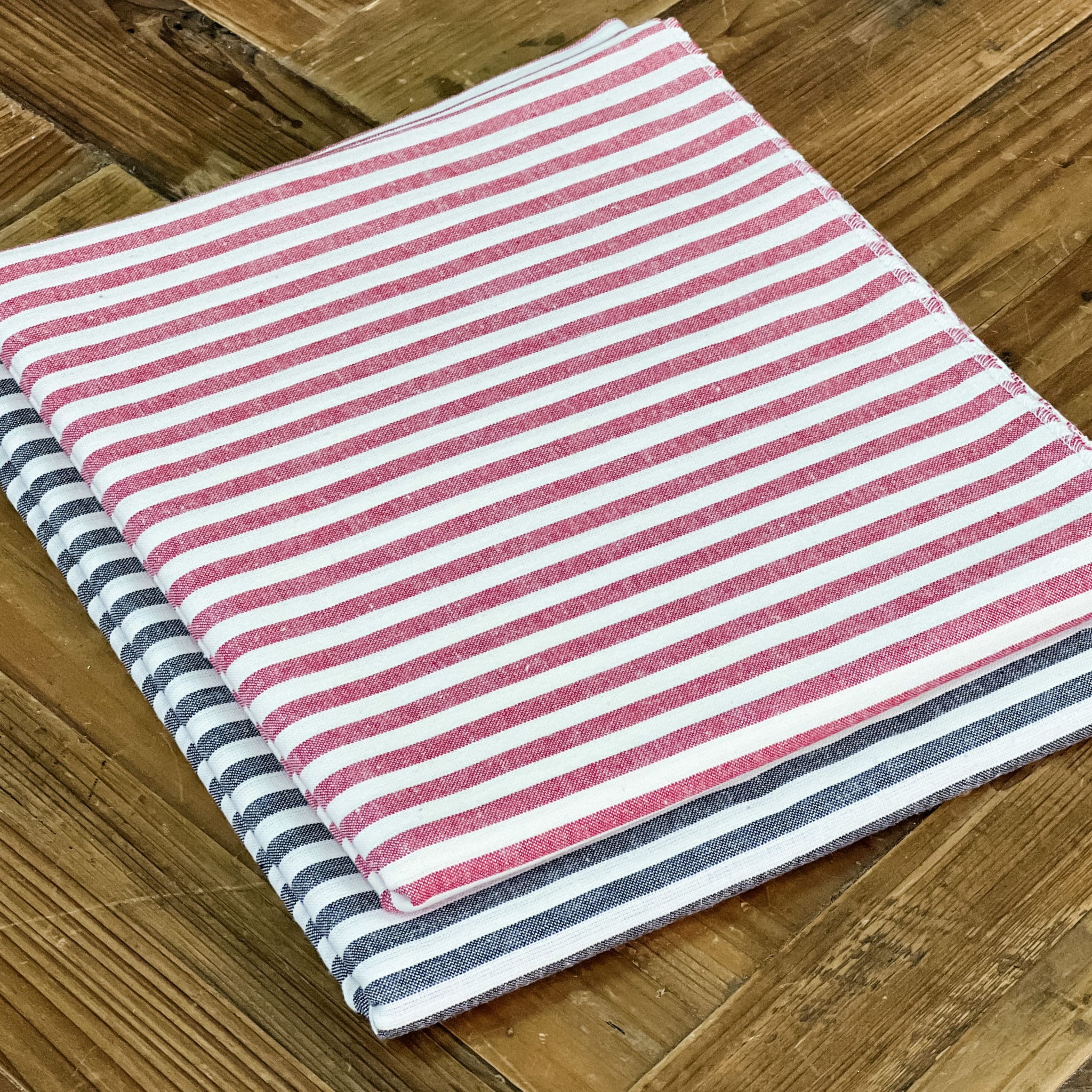 Ticking fabric is a real mainstay in home design, featuring a look that remains crisp, current and trendy, even though it’s been around for hundreds of years! How many products can you say that about! This tightly woven, hard-working fabric was originally used to cover mattresses, designed to keep quills & feathers from poking through the fabric.