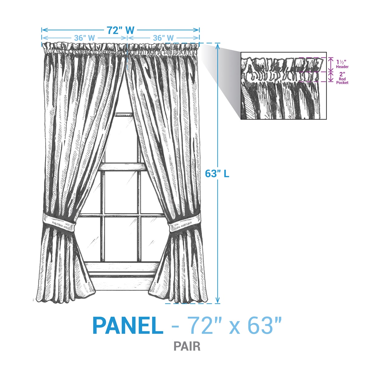 Made from 100% cotton in a smooth flat weave, these panels offer a soft drape and a clean, tailored finish—perfect for kitchens, living spaces, or bedrooms with a country or cottage feel. Designed for easy hanging, the top features a 1.5″ header and a 2″ rod pocket, allowing it to slip easily onto a standard curtain rod for a smooth, gathered look.