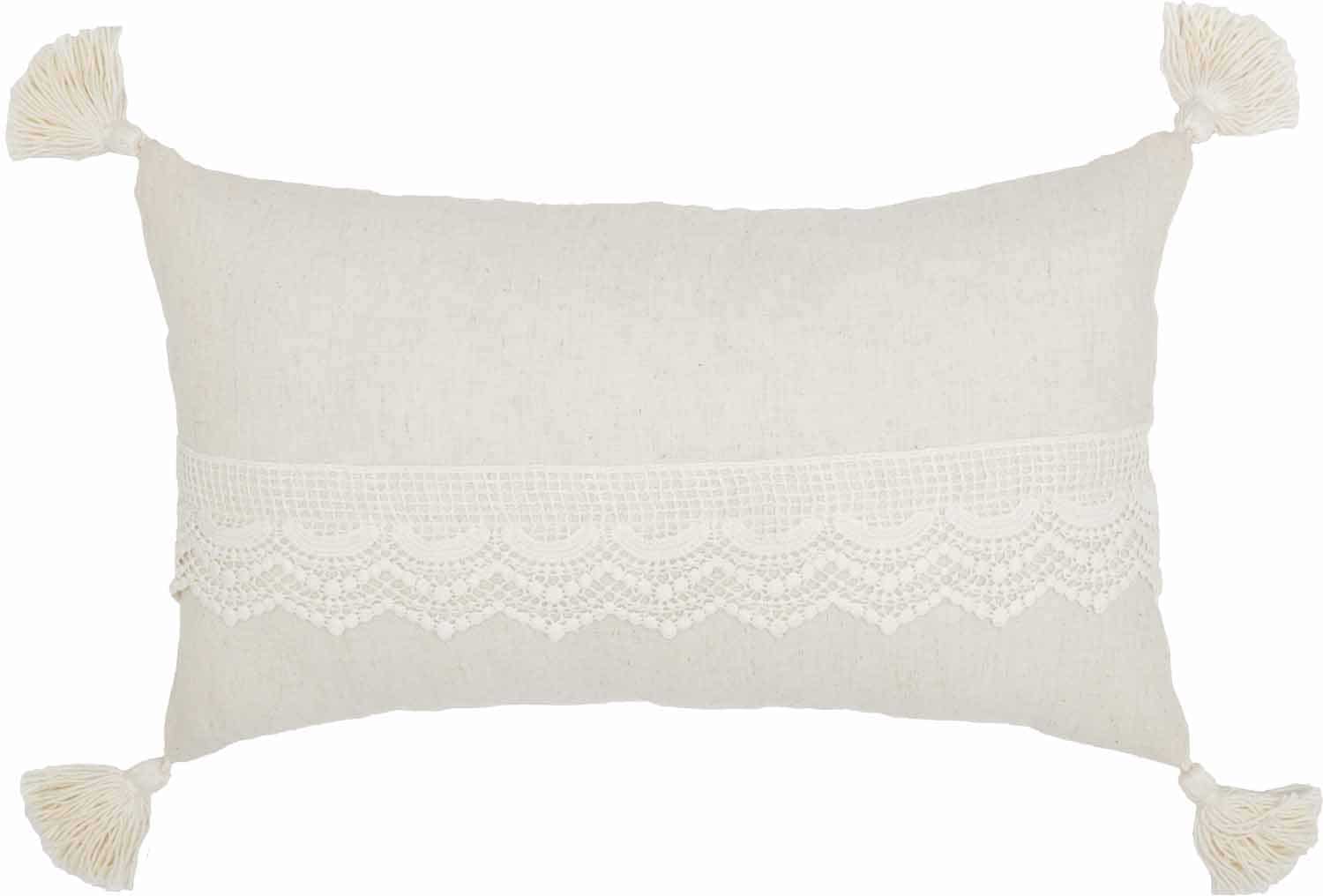 When you want to add a touch of farmhouse finesse to your home this season, you’ll want to bring in the Flax and Lace Collection! The design adds a level of sophisticated simplicity and elemental elegance, with beautiful details and soft, cozy neutrals just right for today’s interiors. The pillow cover is a warm cream, cotton-flax blend, accented with delicate, airy lace in a slightly paler tone, sewn lengthwise across the cover. Four flirty 3″ cream tassels (same color as lace) are sewn to the corners, and both the lace and tassels lend a tonal contrast with the warm cream fabric. The pillow cover with its sweet and pretty details adds a lovely touch to your farmhouse with rich textures and fanciful, feminine details.