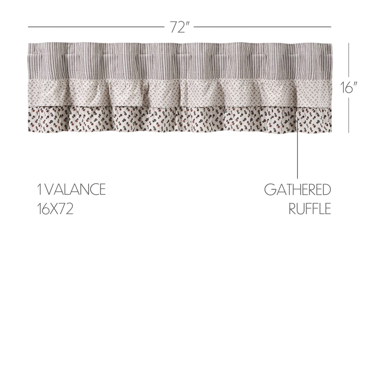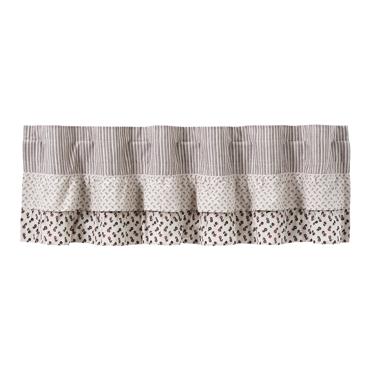 The Florette Ruffled Valance adds a classic country touch to your decor. Warm neutral colors of white, coffee brown, and red, in three distinct design patterns with two layers of ruffles add a farmhouse element and charming softness to offset your decor. This farmhouse valance is perfect for protecting your French country living space from the sometimes harsh rays of the sun. Hangs easily with either rod pocket or back tabs.