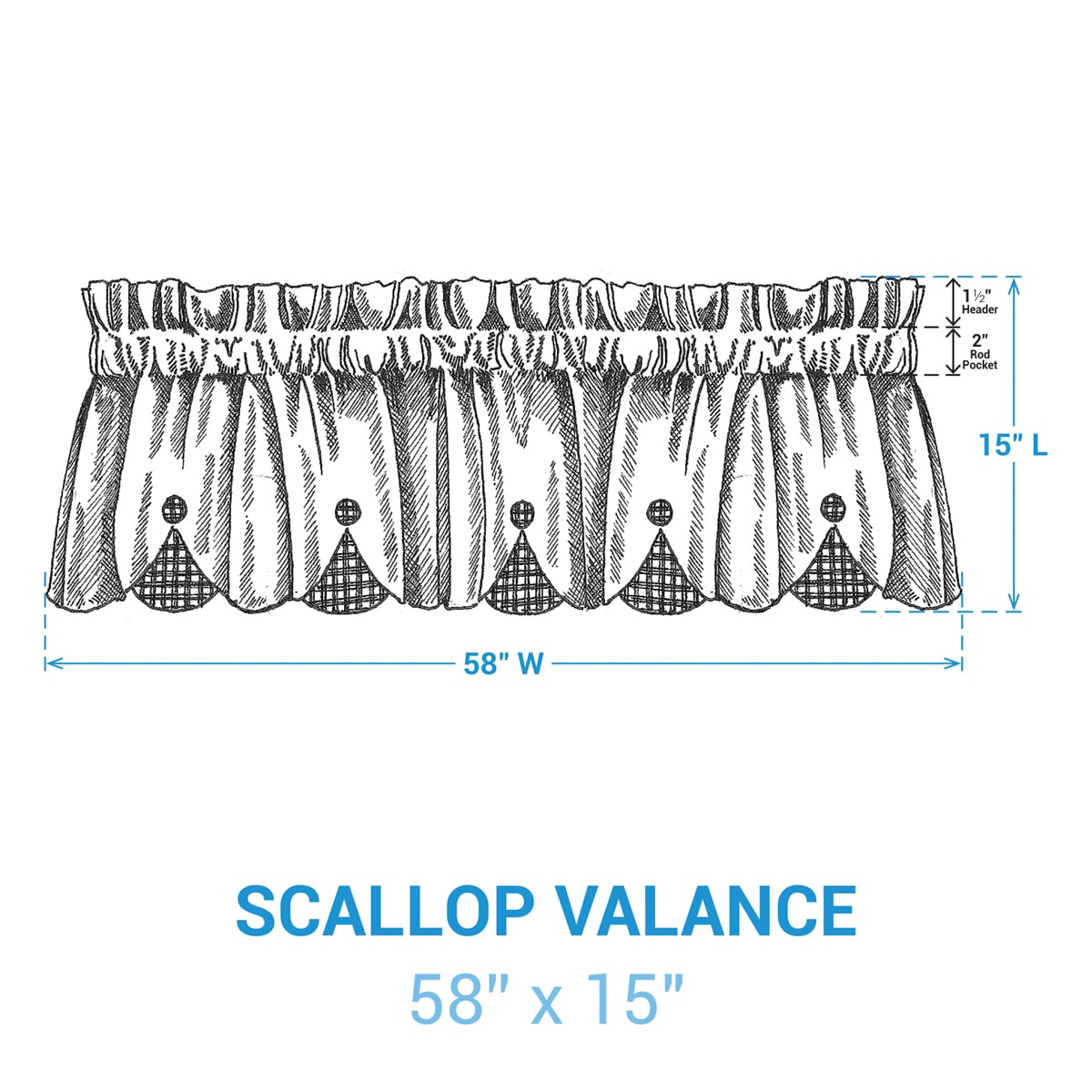 Elevate your window with the charming details of the Garden Grace Lined Scalloped Valance. The gently scalloped edge reveals a peek of coordinating striped fabric in leaf green and soft dusty terracotta, adding a layered, decorative finish. Subtle button accents along the scalloped edge complete the look with a handcrafted feel.