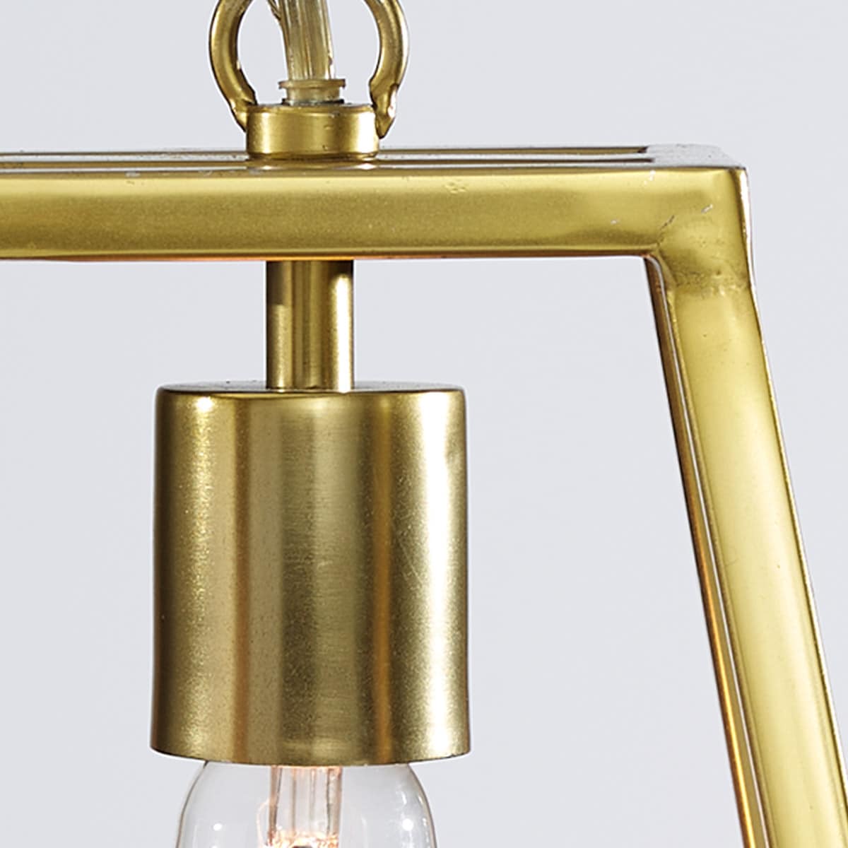 The Gold Pendant Lamp is a striking blend of elegance and modern design, perfect for adding a chic touch to any space. Its open, triangular frame showcases a sleek, luxurious gold finish, creating a sophisticated yet airy aesthetic. Designed to be both stylish and functional, this pendant light includes a 3-foot adjustable chain and 7 feet of cording, allowing for customizable height placement. A coordinating ceiling plate ensures seamless installation, making it easy to hardwire into your kitchen, hallway, or living room. Pair it with a 60-watt bulb (not included) to create a warm and inviting glow. Whether enhancing a boho, modern, or farmhouse aesthetic, this pendant light is a statement piece that elevates any décor.