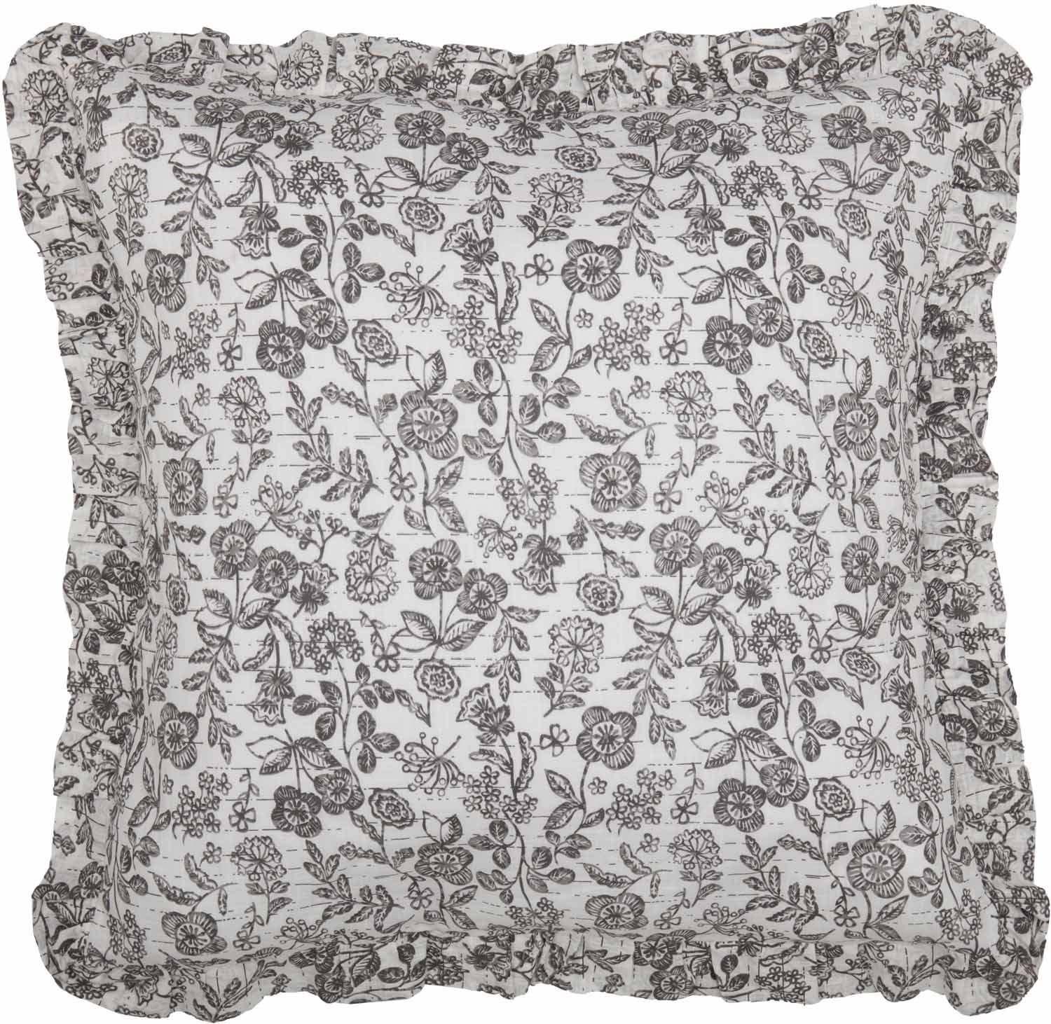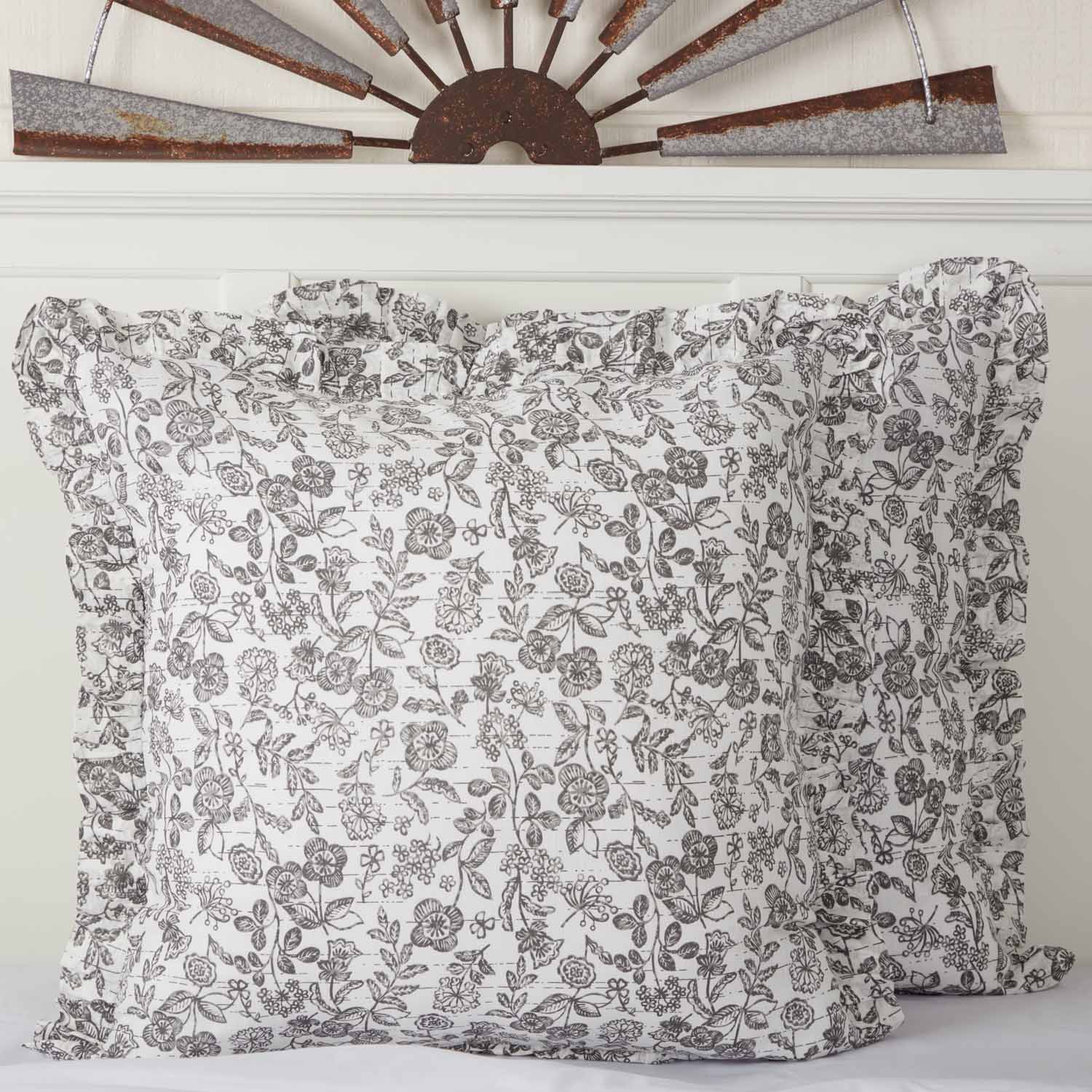 You’re going to love how easy it is to transform your farmhouse bedroom with the fresh, fun fabric of the Gray Gables Floral Euro Sham. The dynamic design of delicate flowers offers an airy look that has visual energy and appealing movement. The quiet grays and soft restful white add an understated color palette that never looks overdone, keeping the focus on crisp, floral details and sweet feminine flair. A ruffle surrounds the cover on all sides, adding a luxurious layer of texture and softness. The sham reverses to the same fabric with three matching ties to keep pillow in place.