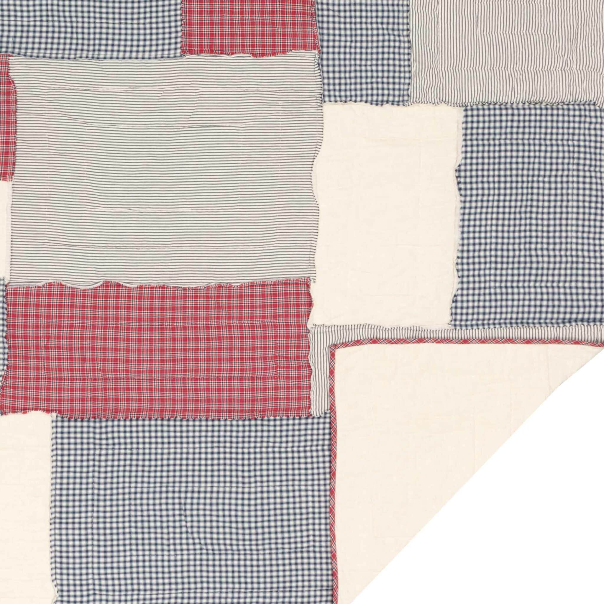 Stitch in the Ditch and Echo quilting techniques add texture and structure while reinforcing the quilt’s durability. The back is finished in solid cotton white, offering a clean reverse option, and the edges are trimmed in a coordinating plaid binding for a polished finish. Designed to coordinate effortlessly with the full Hatteras Collection, this quilt lends a refined yet relaxed Americana or farmhouse style to your bedroom, blending traditional elements with a modern sensibility.