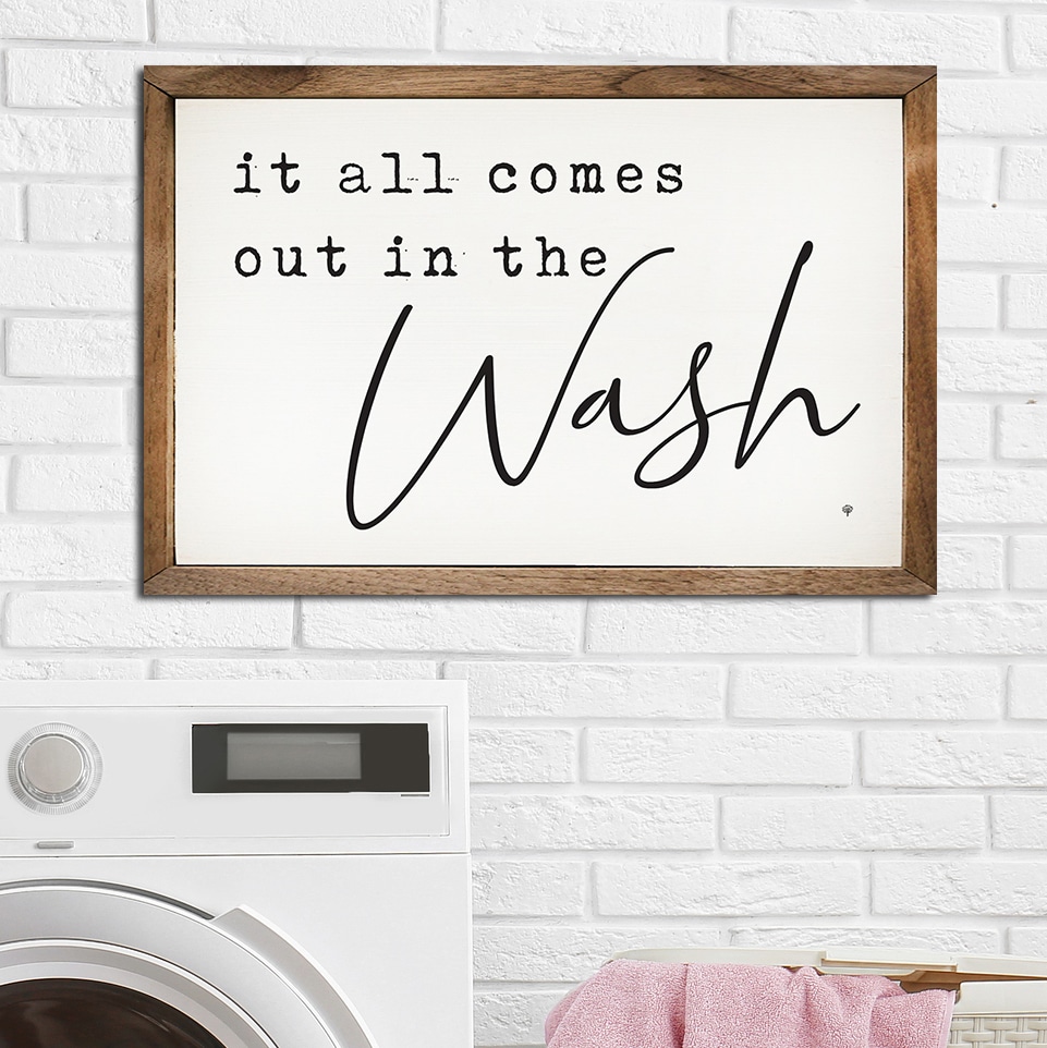 “it all comes out in the Wash” is a sign that is sure to bring a smile to your face while adding interest and charm to your home. The simplicity of this sign with its natural walnut frame, white background, and crisp black letters, draws attention without overwhelming your room. This adage speaks to a deeper truth, reminding us that regardless if we worry or not, things generally have a way of working out. We love these sayings in our homes because they help us focus our attention and remind us how beautiful life can be when we just let go and believe. Each sign is made to order.