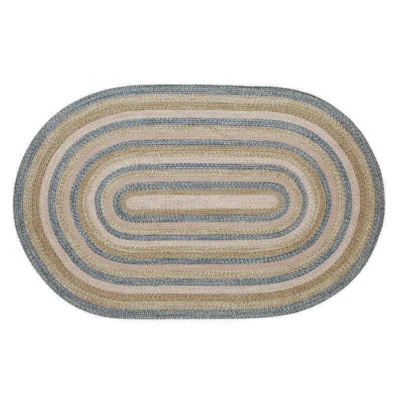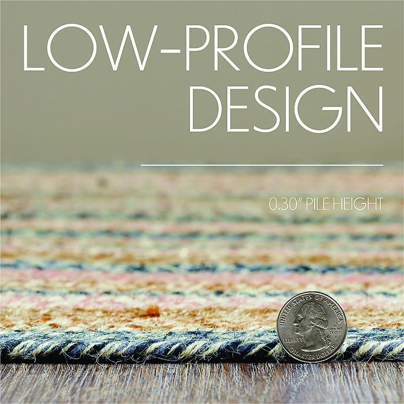 Create a bright, springtime look for your entryway or living space with soft shades of blue and pink with a seasonal design in a curl-resistant jute blend that adds style and safety. Machine stitching holds braiding together even with increased wear and tear. Reverses to the same as the front. The jute rug features a blend of dusty blue, misty rose, and creme for a soft, shabby chic look that complements a wide array of Spring country farmhouse decor. We will be happy to send you a sample of this pattern for a minimum charge to assist you in your selection.