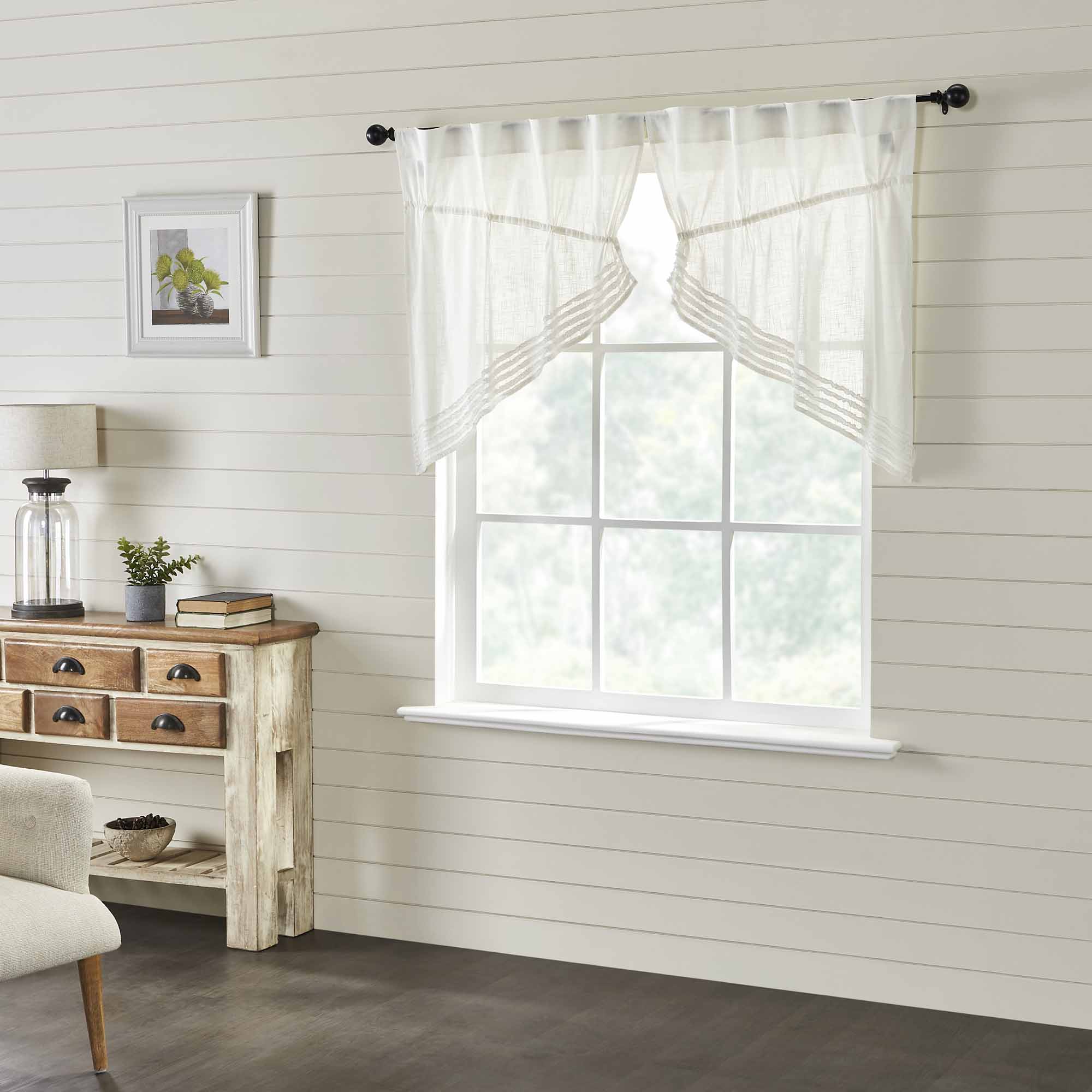 Mix and match the curtain with other linens from the Kathryn, Antique Muslin White and White Christmas Collections, all featuring the same muslin fabric, for a look that works together in perfect harmony.