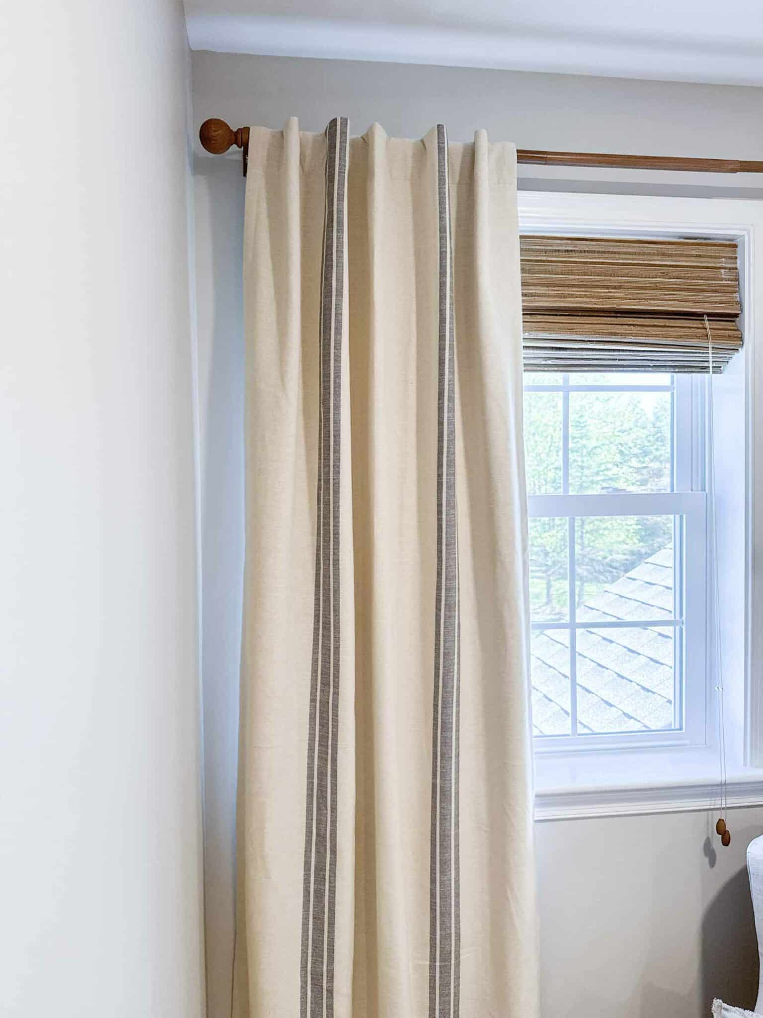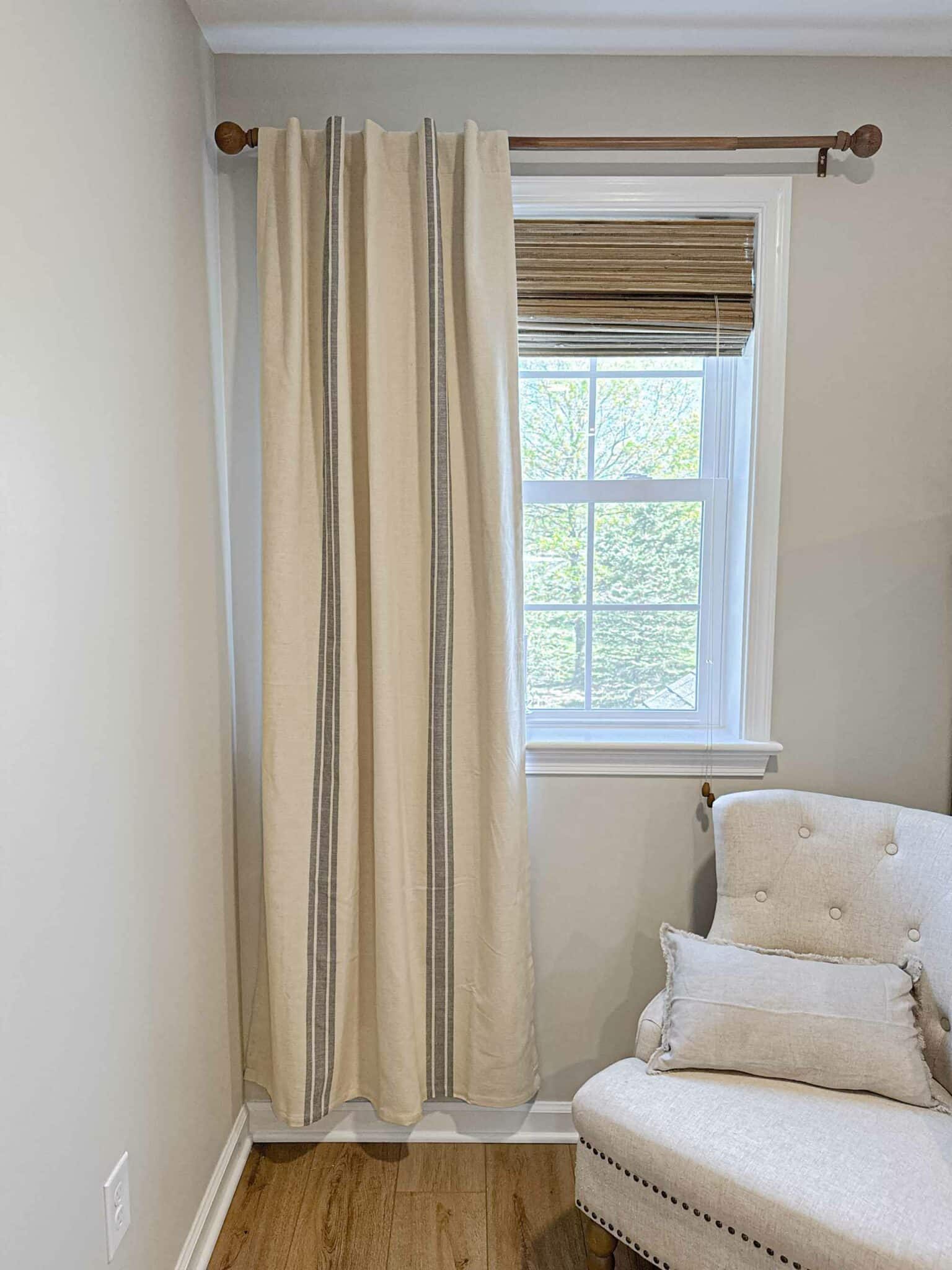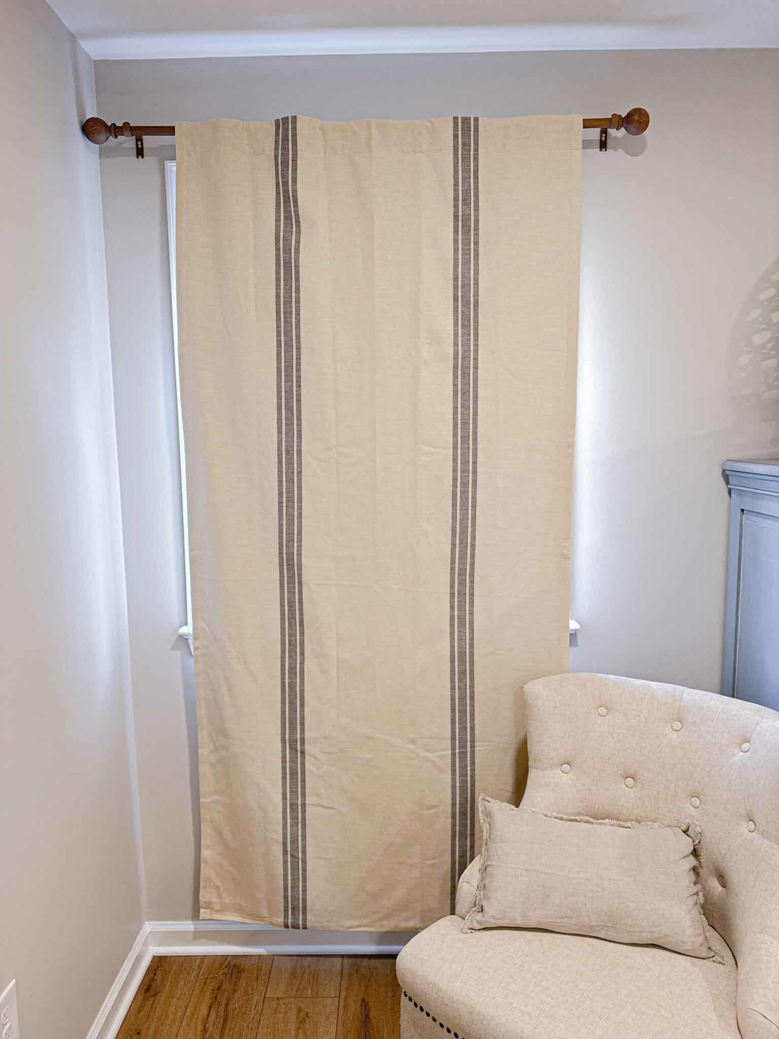 Cream cotton w/charcoal Grey grain sack stripes create the perfect look for a fresh farmhouse-style home. The Market Place Grain Sack Blackout Panel includes a single cotton window panel with a matching tie-back. The room darkening curtain includes a blackout lining crafted from 100 percent polyester to add practical benefits without sacrificing style. The panel offers multiple benefits to your living space bringing more privacy and noise reduction along with greater energy efficiency and, of course, the ability to control the sunlight coming in. The panel adds both an attractive curtain & a blackout layer shielding rugs, fabrics, furniture, and flooring from the sun’s rays. Market Place Gray curtains help to create a comforting space, sure to assist anyone seeking quality sleep, relaxation, or enhanced productivity. The panel is easy to hang with a generous 3.25″ rod pocket or hidden tabs.