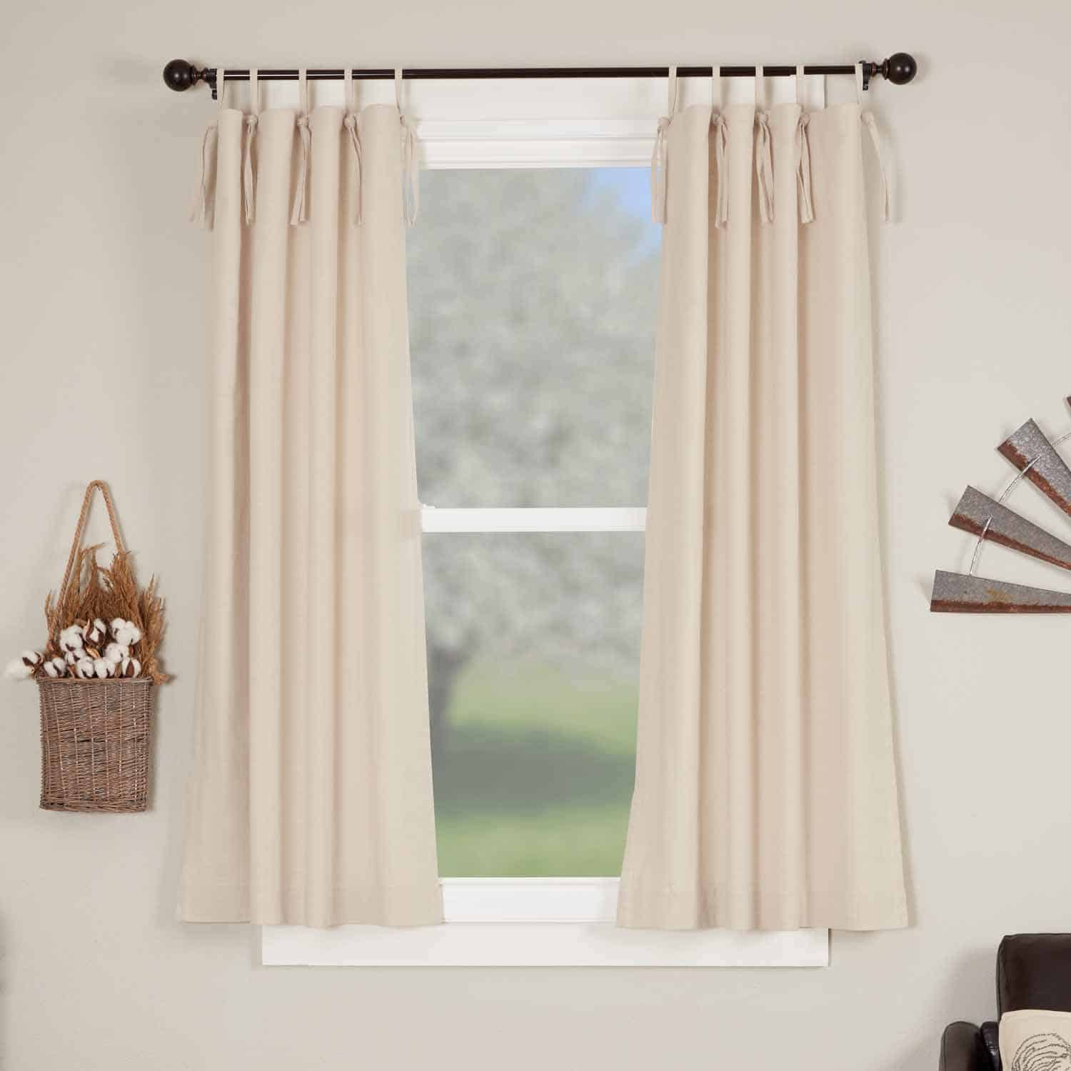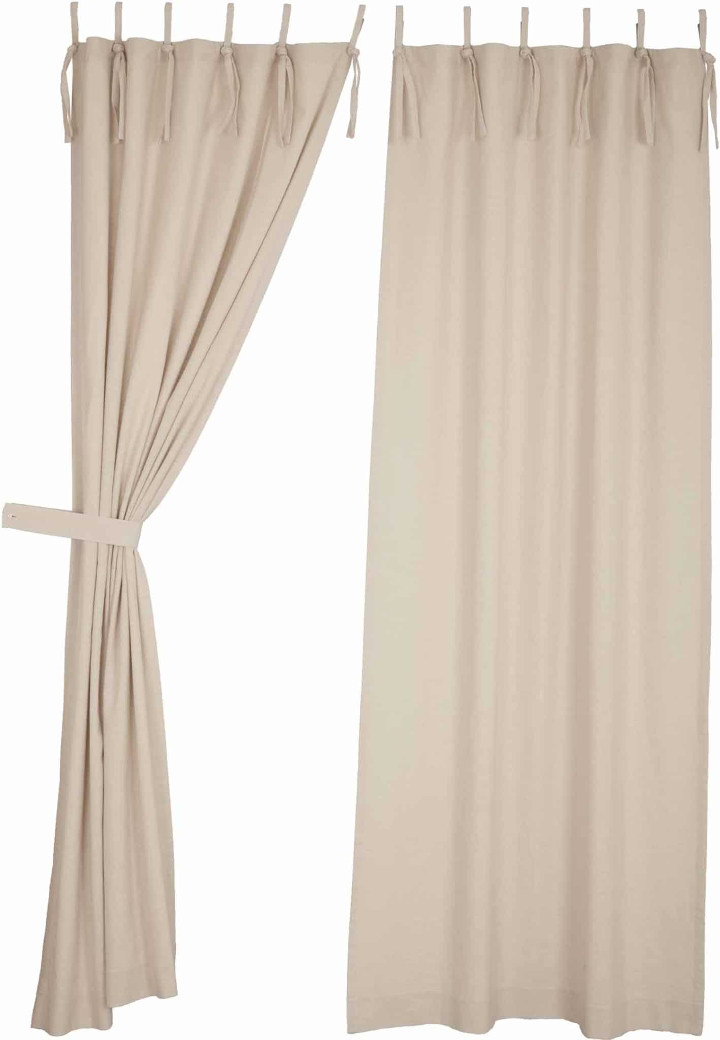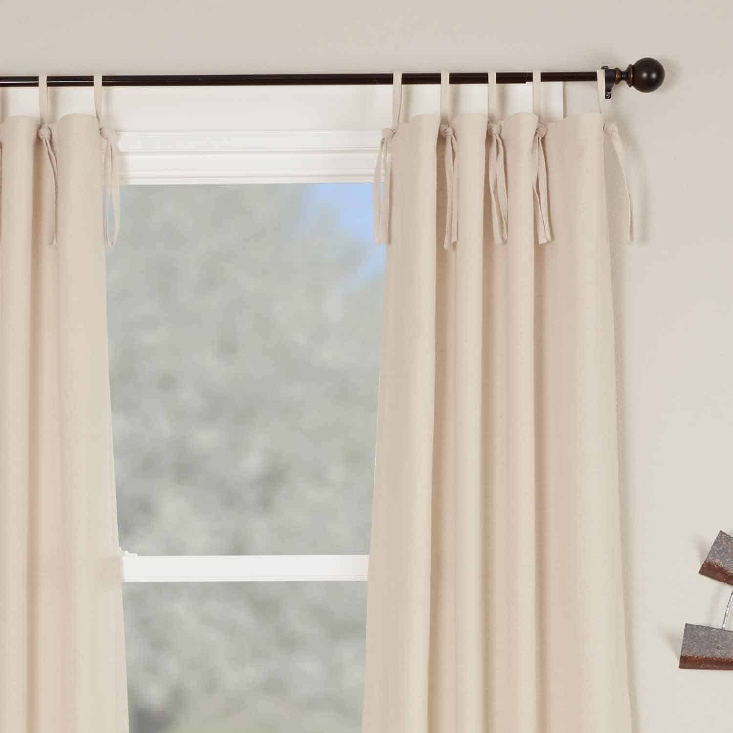 Our beloved Market Place Collection offers a great solution for bringing your farmhouse to the next level with a fresh, easy-going upgrade. The rustic cotton panels feature a warm cream tone with a rich texture, substantial weight, and a surprisingly soft hand-feel. The curtains are fully lined with white cotton sheeting, adding body and an extra layer that brings more privacy and insulation. Each panel has six tie tops that are actually knotted and sewn loops measuring 3.5″ and easily accommodating most curtain rods. The look is casual and relaxed, with secured tab tops that offer chic style without the hassle and unfinished look of actual ties. Two matching fabric tiebacks are included with panels, giving you the option to create a gathered, ruched look by pulling the panels back. Set/2 panels.