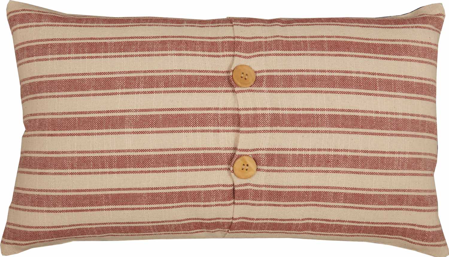 The Market Place Red fabric is the perfect choice for our patriotic flag accents, featuring a beautifully textured, substantial-weight cotton with a surprisingly soft hand feel. The pillow cover is a unique salute to our classic American flag, featuring red and cream stripes and a deep blue appliqued patch with a wreath of 13 stars. In honor of the original Betsy Ross flag, this accent features an updated twist that is sure to add the right touch to your seasonal farmhouse. The cover reverses to same striped fabric with 2 natural wooden buttons to secure insert. (With one extra button just in case)