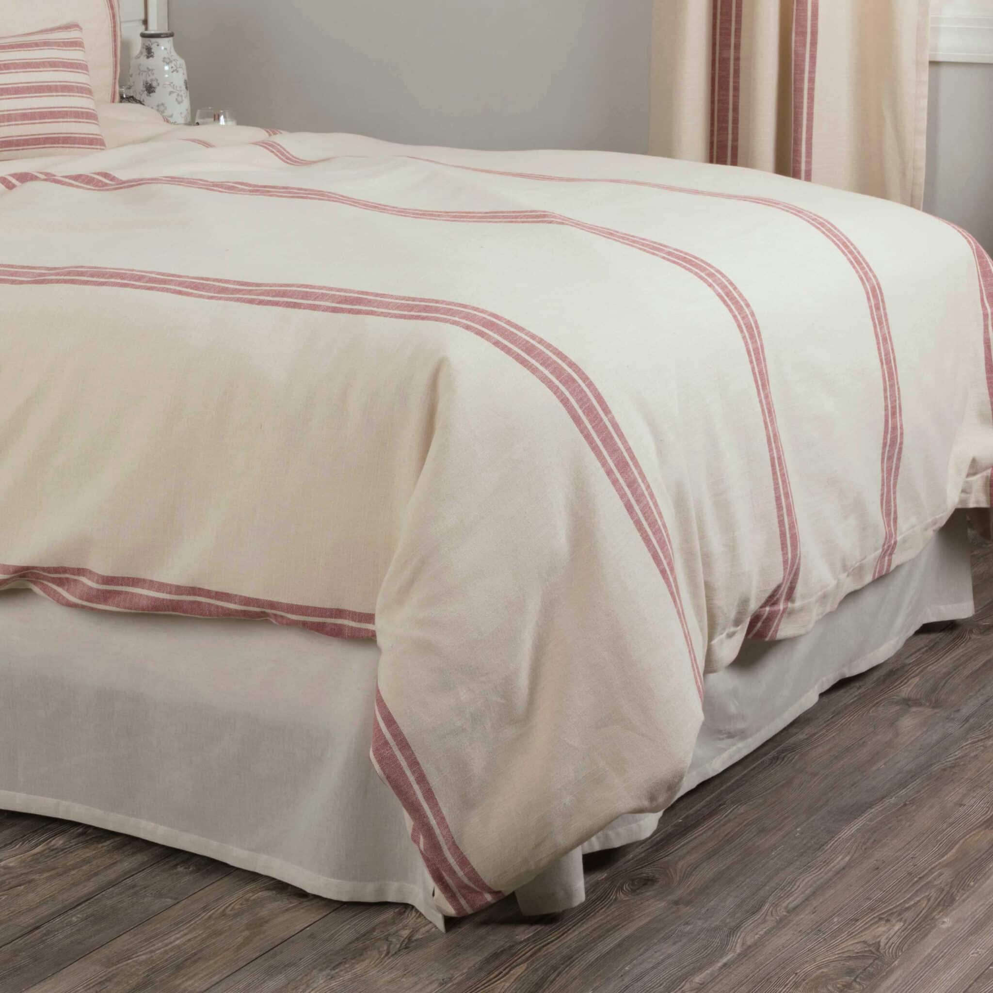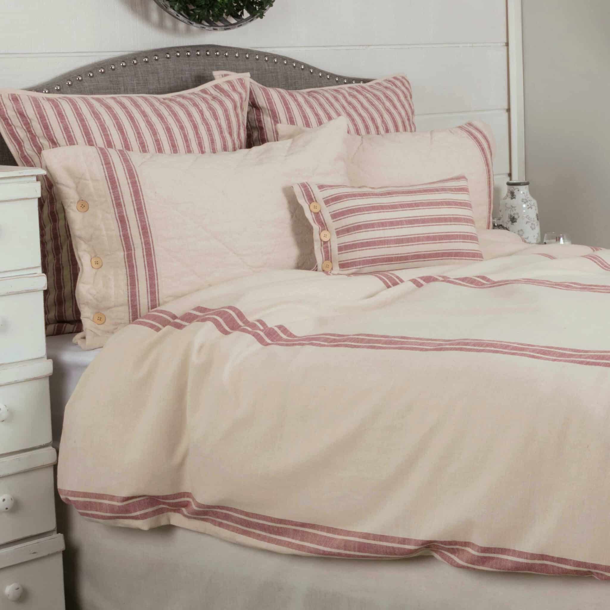 We LOVE stripes and grain sack fabrics and we know that you do too! When we combined both grain sack fabric and stripes in our Market Place Collection, we created one of our most popular and timeless farmhouse styles. We’ve been hearing for some time now that many of you would like to see Market Place in a true farmhouse red. Well, here it is…and we just know you’re going to love it!! For this collection, we chose a beautifully textured, substantial weight cotton fabric with a surprisingly soft hand feel. Our Market Place Red Grain Sack Stripe Duvet Covers are made of 100% cotton.