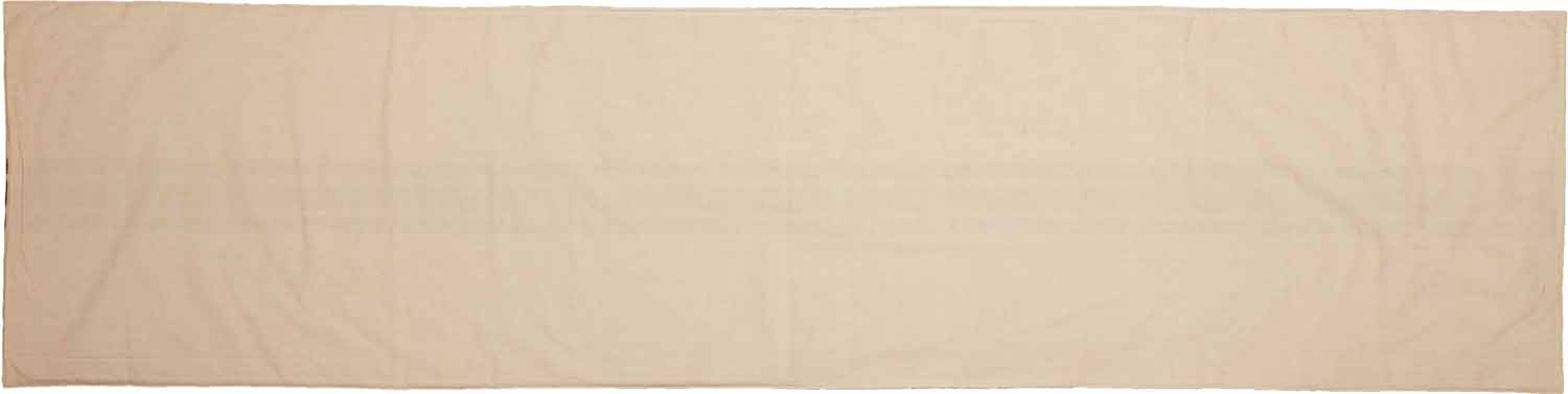 The wide woven stripes in muted brick red accent the center of the runner and make a delightful contrast against the natural cream base. Runner measures 13″ x 54″ and reverses to a soft cream cotton.