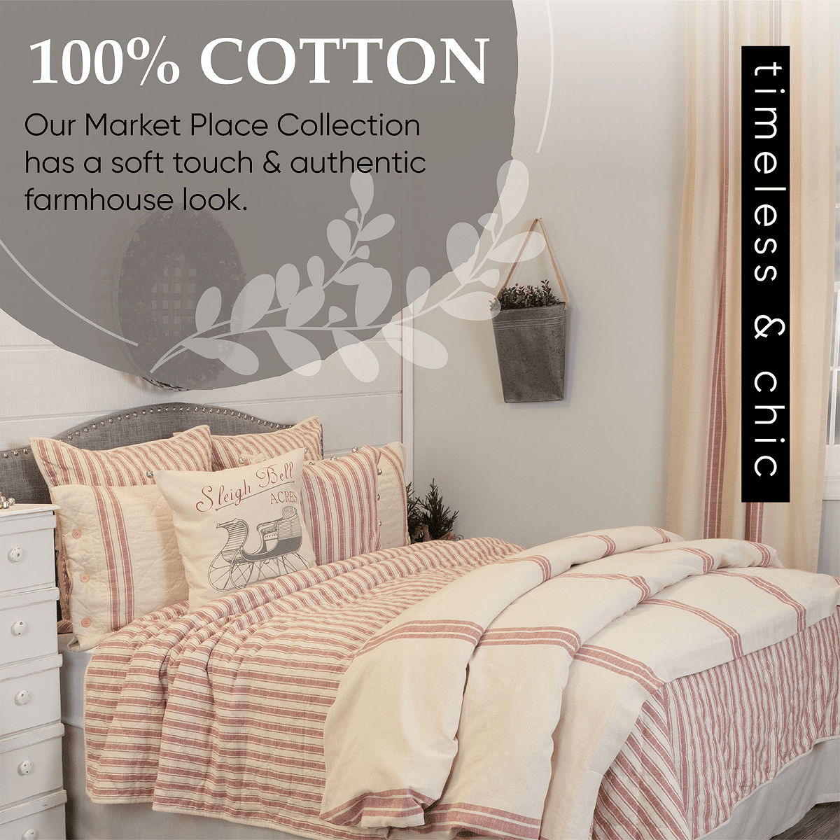 We LOVE ticking and grain sack fabrics and we know that you do too! When we combined both of these looks in our Market Place Collection, we created one of our most popular and timeless farmhouse styles. We’ve been hearing for some time now that many of you would like to see Market Place in a true farmhouse red. Well, here it is…and we just know you’re going to love it! For this collection, we chose a beautifully textured, substantial-weight cotton fabric with a surprisingly soft hand feel. Our Market Place Red Ticking Stripe Quilts are made of 100% cotton shell and batting.