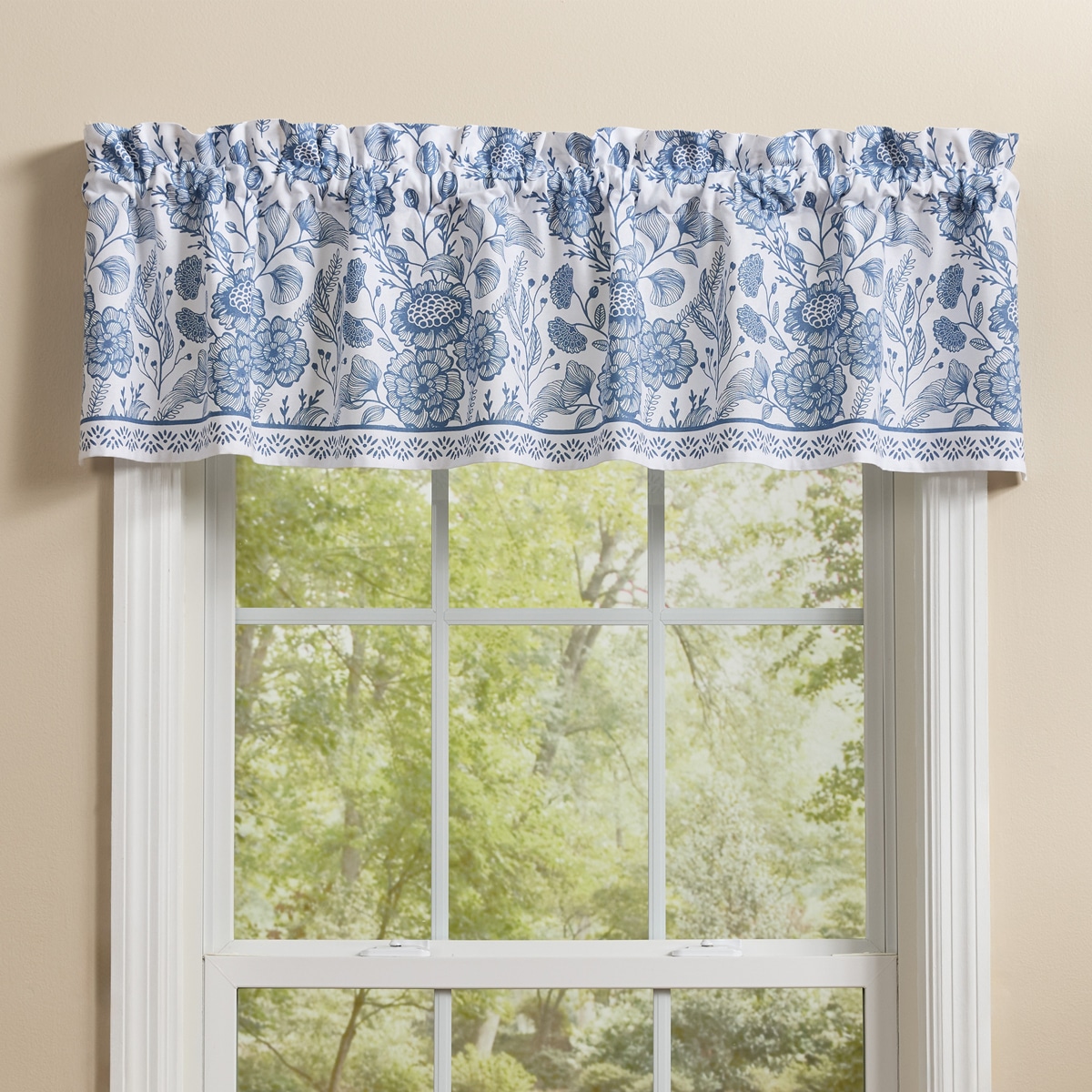 Dress your windows with the soft sophistication of the Matilda Valance. Crafted from 100% cotton, this piece features the collection’s graceful blue floral print with a coordinating border along the bottom hem for a polished finish. Fully lined, it provides structure while adding a fresh, botanical accent to your space.