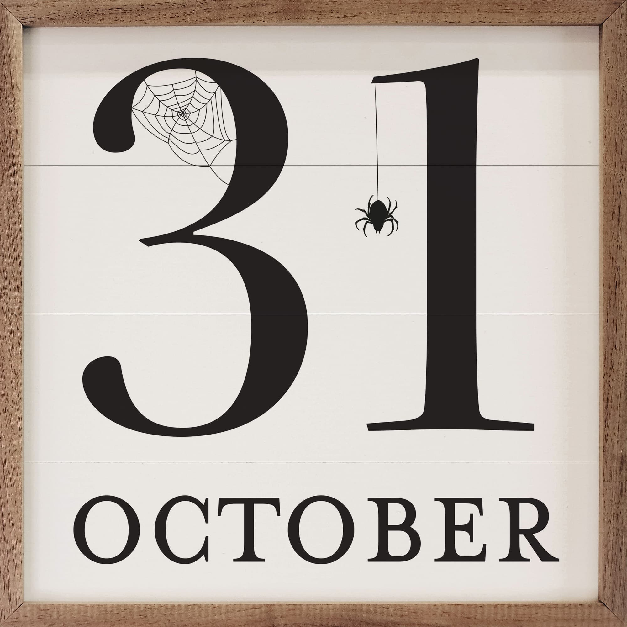 Celebrate the Halloween season with a touch of eerie elegance! This eye-catching sign features the number 31 in bold, large black letters, perfectly set against a contrasting white background. Below the date, the word October is neatly displayed in a complementary font, adding a festive touch. The design includes a detailed cobweb woven into the upper part of the number 3, while a spider dangles from a thread extending from the number 1. This whimsical and spooky detail adds a playful yet creepy vibe, perfect for setting the mood for Halloween parties or haunted house decorations. Crafted with high-quality materials, this sign is durable and makes your Halloween celebrations memorable with this unique and stylish sign that combines festive spirit with a hint of frightful fun! A simple walnut frame compliments the warm mellow tones, adding a natural, warm element that enhances the overall image. Signs are made to order.