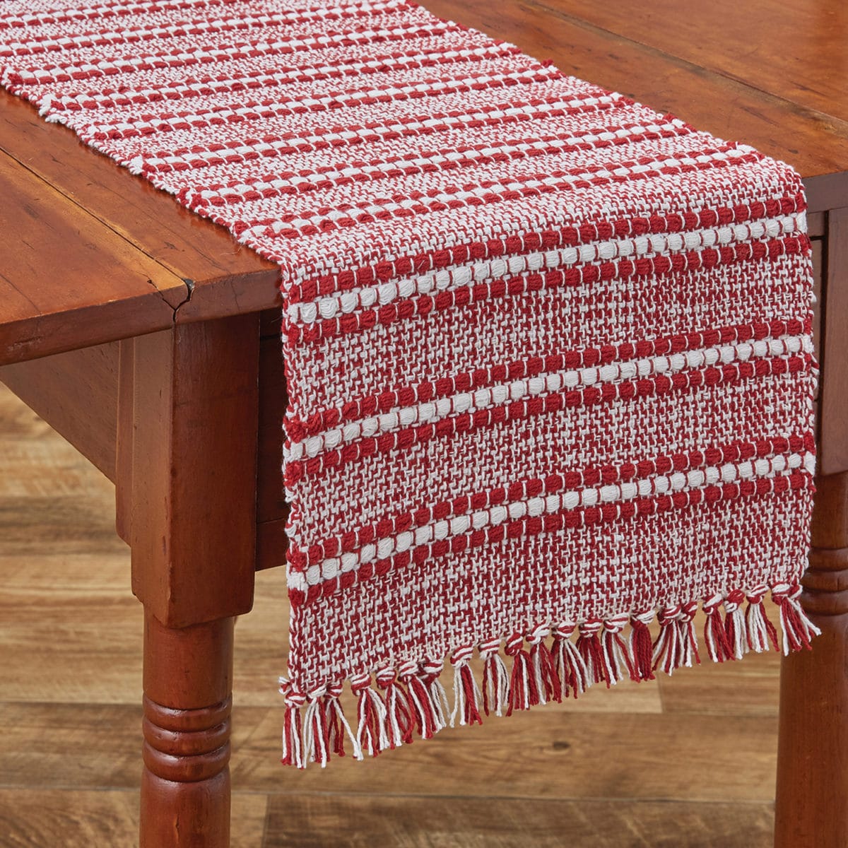 We love the fact that red and white never go out of fashion when it comes to Christmas decorating! Every year at Christmas, we see it displayed in new, up-to-date variations and styles. The Peppermint Stripe Table Runner offers an updated, easy-going look that is sure to enhance your holiday tabletop this season. The runner features a thicker, chunky weave with knotted fringes adding the perfect texture and dimension, along with a classic color combination and casual charm.