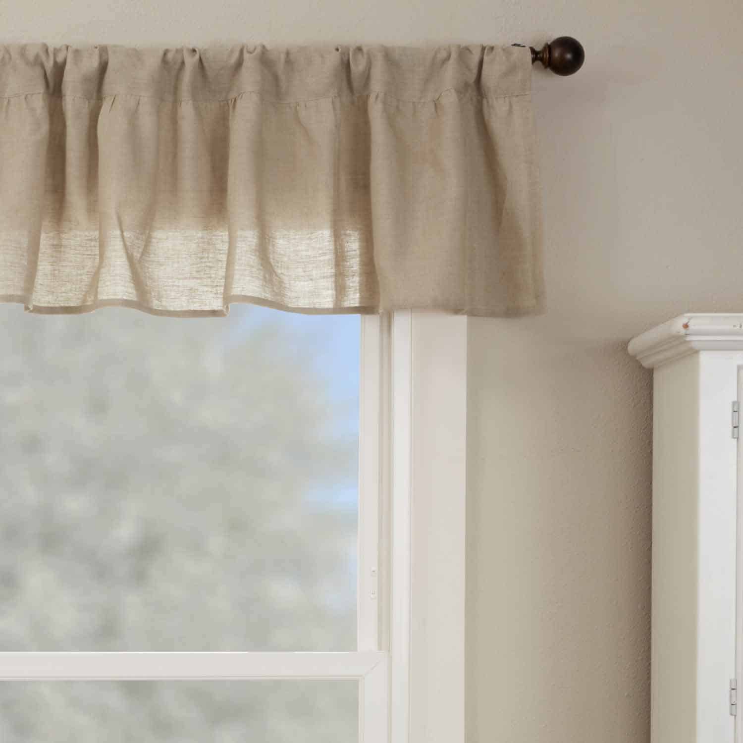 The Natural Valance adds luxurious linen and lush softness to your windows in a tranquil taupe, designed to blend beautifully with today’s rustic farmhouse style. The lightweight, breathable weave is unlined and provides all the allure of linen and the soft ruffle dresses up the valance, adding a lovely romantic touch. There is no header for a modern top finish and a rod pocket and fabric loops offer alternate display options for your convenience.