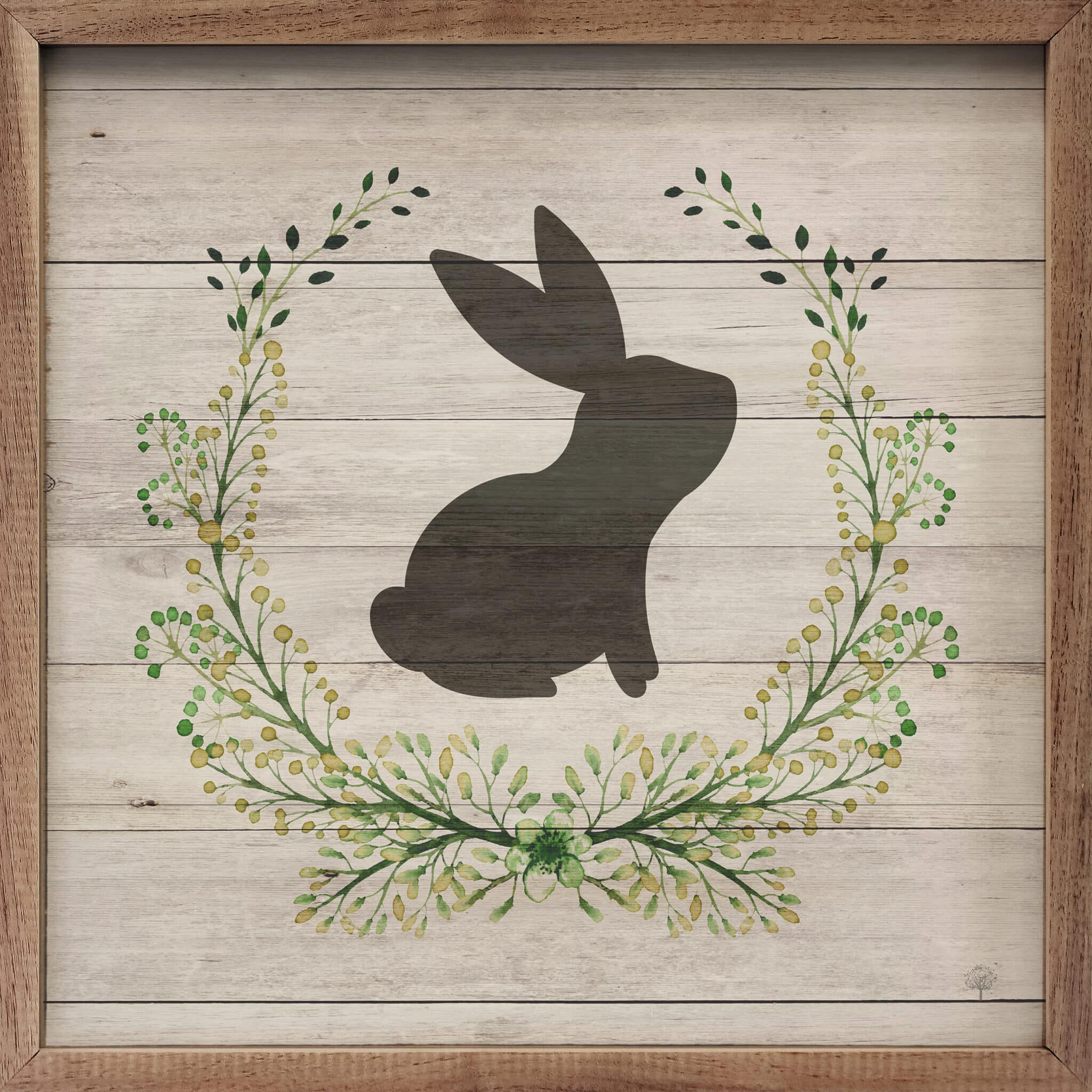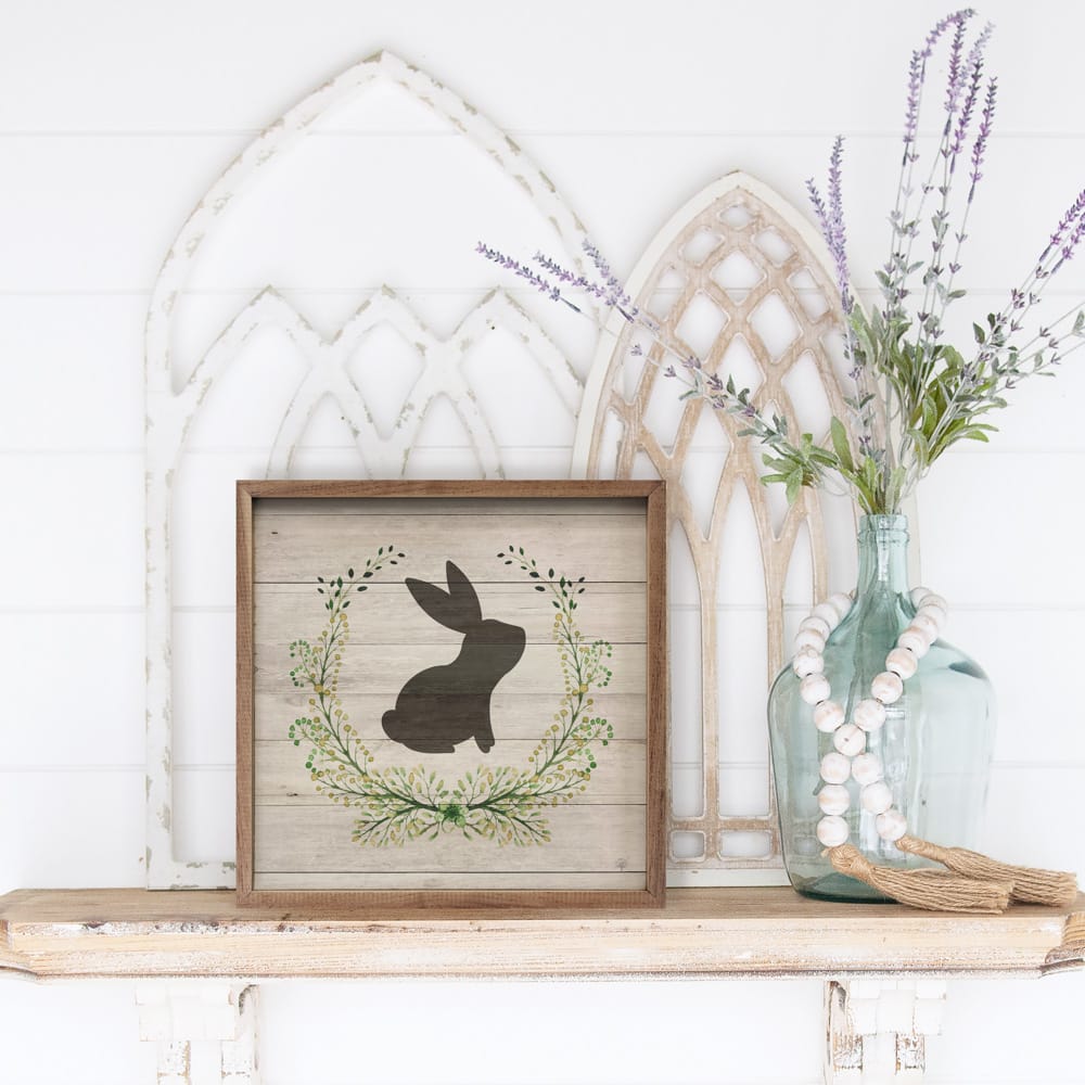 Add a touch of rustic charm to your home with the Rabbit Wreath Whitewash Wooden Sign. Featuring a striking black bunny silhouette nestled within a delicate green wreath, this piece exudes a cozy farmhouse feel. The whitewashed wood background enhances its vintage appeal, making it a perfect addition to your spring or Easter decor—or a delightful accent all year round. Whether displayed in your entryway, kitchen, or living space, this handcrafted sign brings warmth and natural beauty to any setting. Ready to hang and framed with a natural wood border, it’s a simple yet elegant way to celebrate the season and the charm of country living. Signs are made to order.