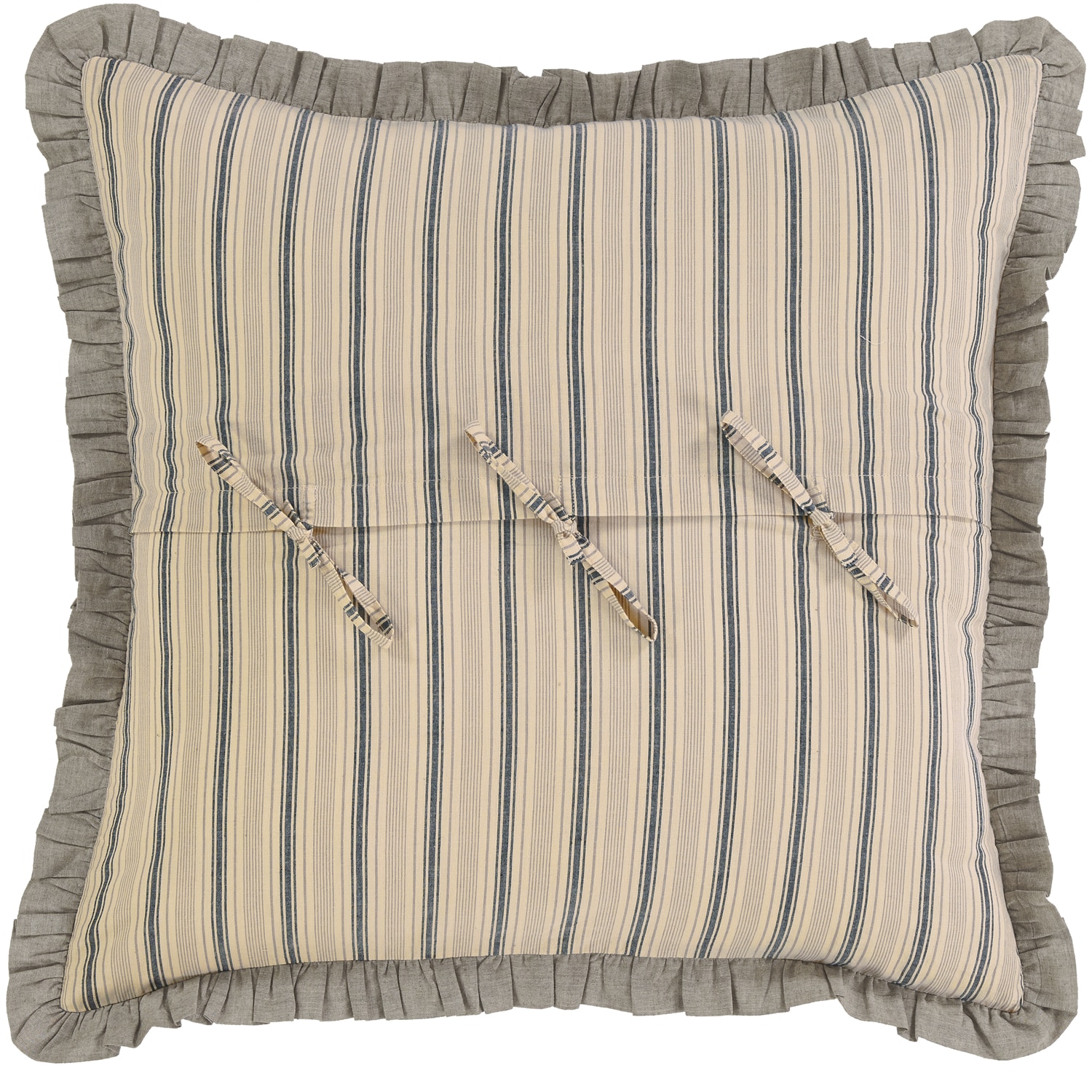 Uplifting and welcoming gray and cream hues give this sham a country-chic feel while staying true to vintage, farmhouse style. The generous size is perfectly tailored for a Euro Pillow insert. Sawyer Mill Sham features a charming striped pattern with an antique creme base and soft, charcoal grey striping in alternating levels of thickness. The pillow cover is edged with a light ruffle in charcoal grey that would be right at home in any country chic bedroom. The back of the farmhouse-style sham features the same striped pattern with 3 matching tie-style closures to securely hold the fill pillow (not included) with a 3″ overlap to conceal the insert. Made of 100 percent cotton. Pillow inserts are not included – only includes 1 sham.