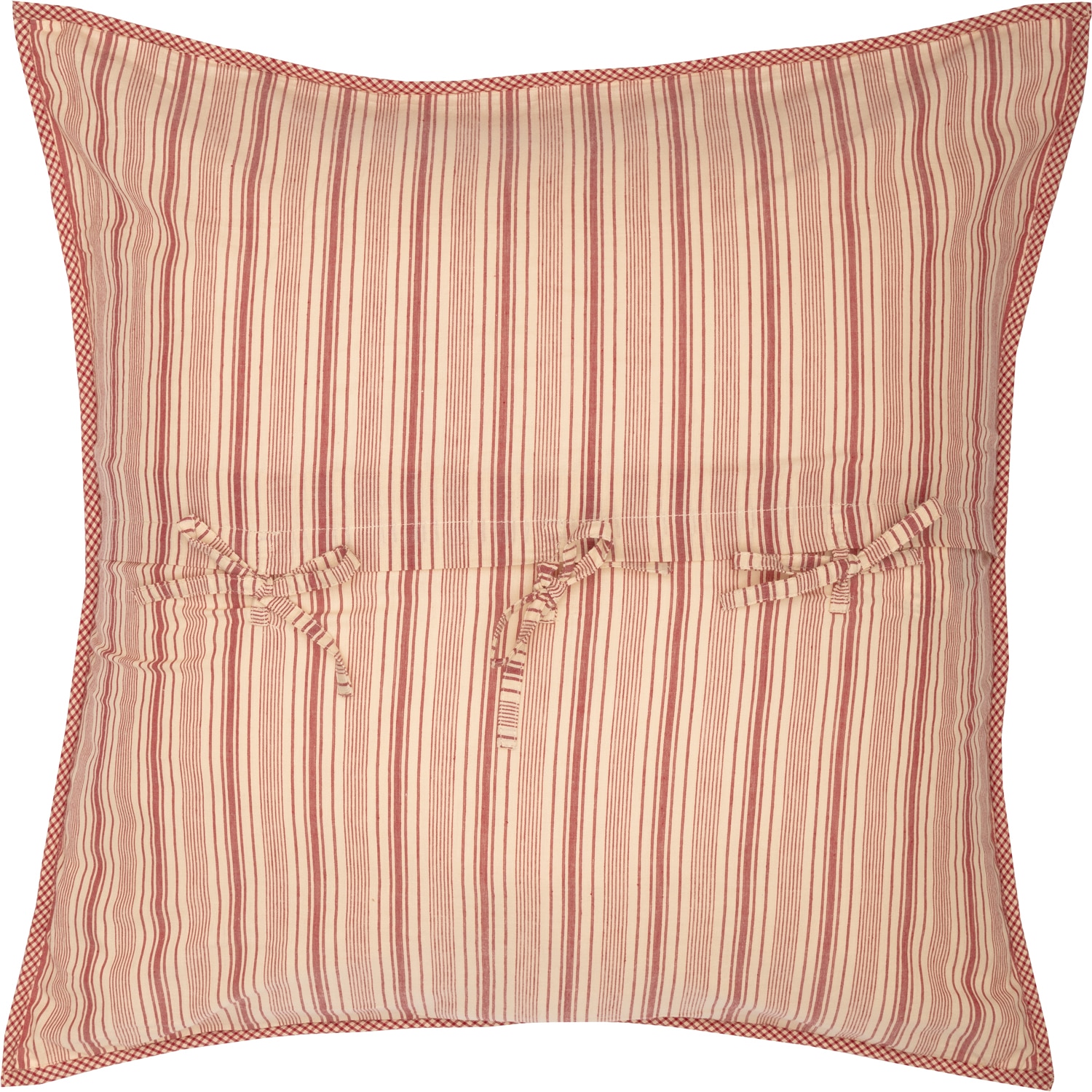 Uplifting and welcoming red and cream hues give this sham a country-chic feel while staying true to vintage, farmhouse style. The generous size is perfectly tailored for a Euro Pillow insert. Sawyer Mill Sham is hand-quilted, machine pieced and features echo hand-quilting and stitch in the ditch on ash grey, creme, and black for a Farmhouse look. The sham is trimmed with a .5 bias cut of red and crème micro plaid and reverses to dark crème and red grain sack stripe and 3 tie closures. A 3″ overlap of fabric conceals the insert. Pillow inserts are not included – only includes 1 sham.
